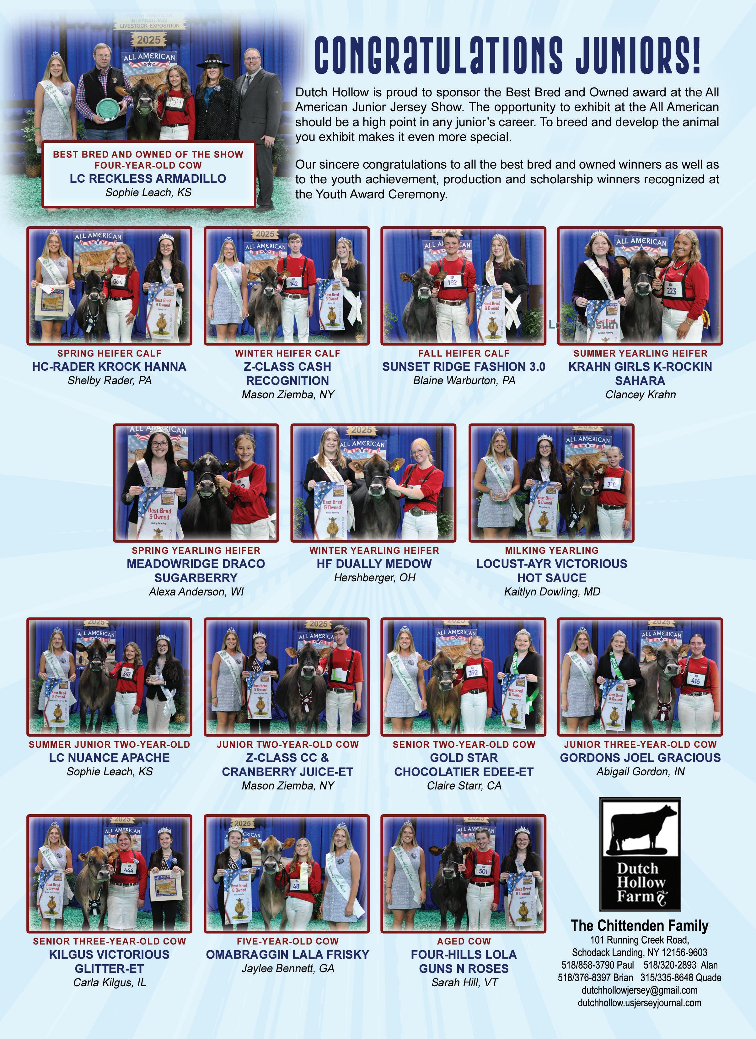 For complete show results, see highlights from The All American Jersey Show begining on page 19. Junior show highlights start on page 57.