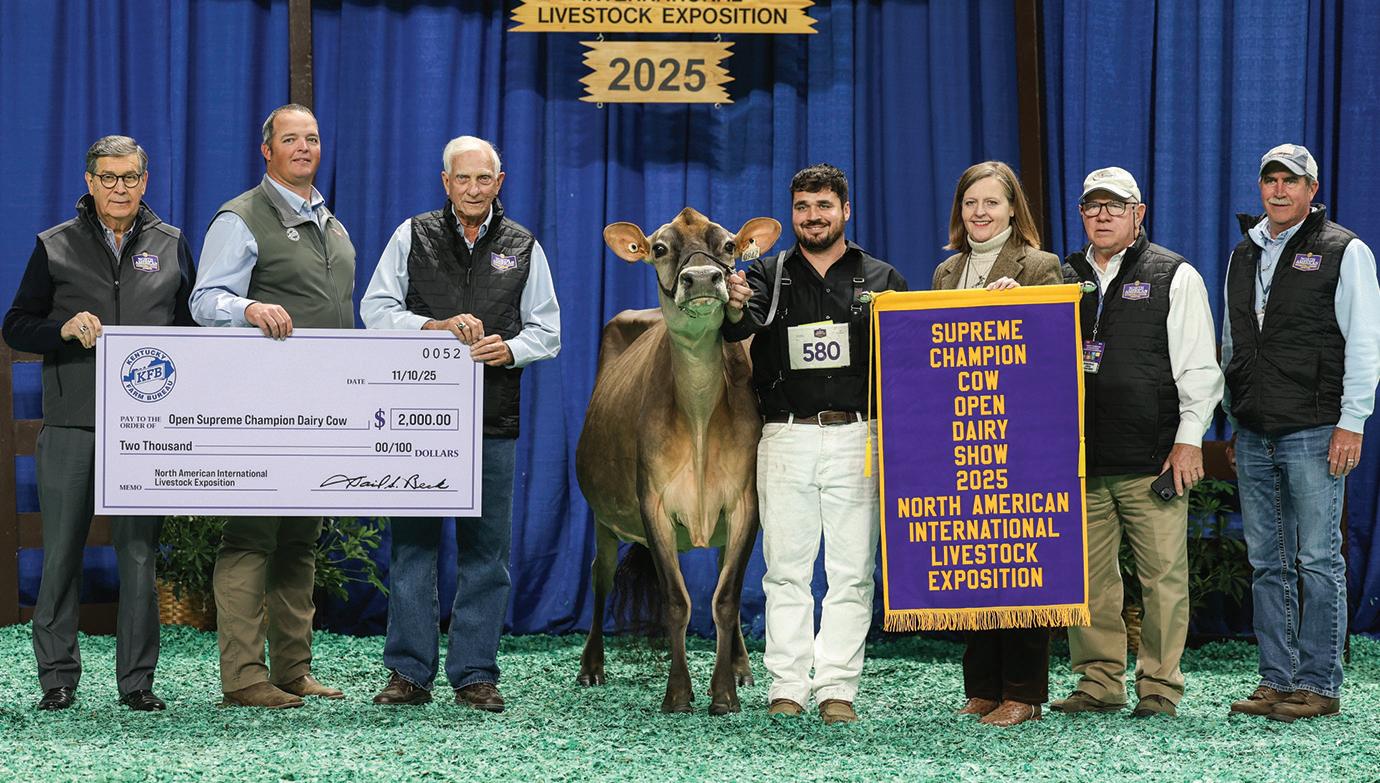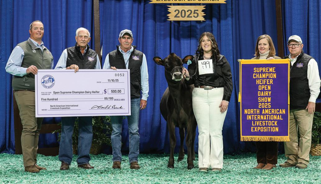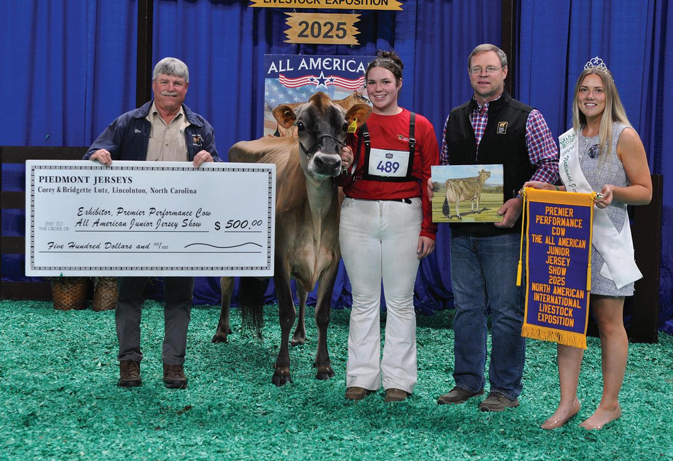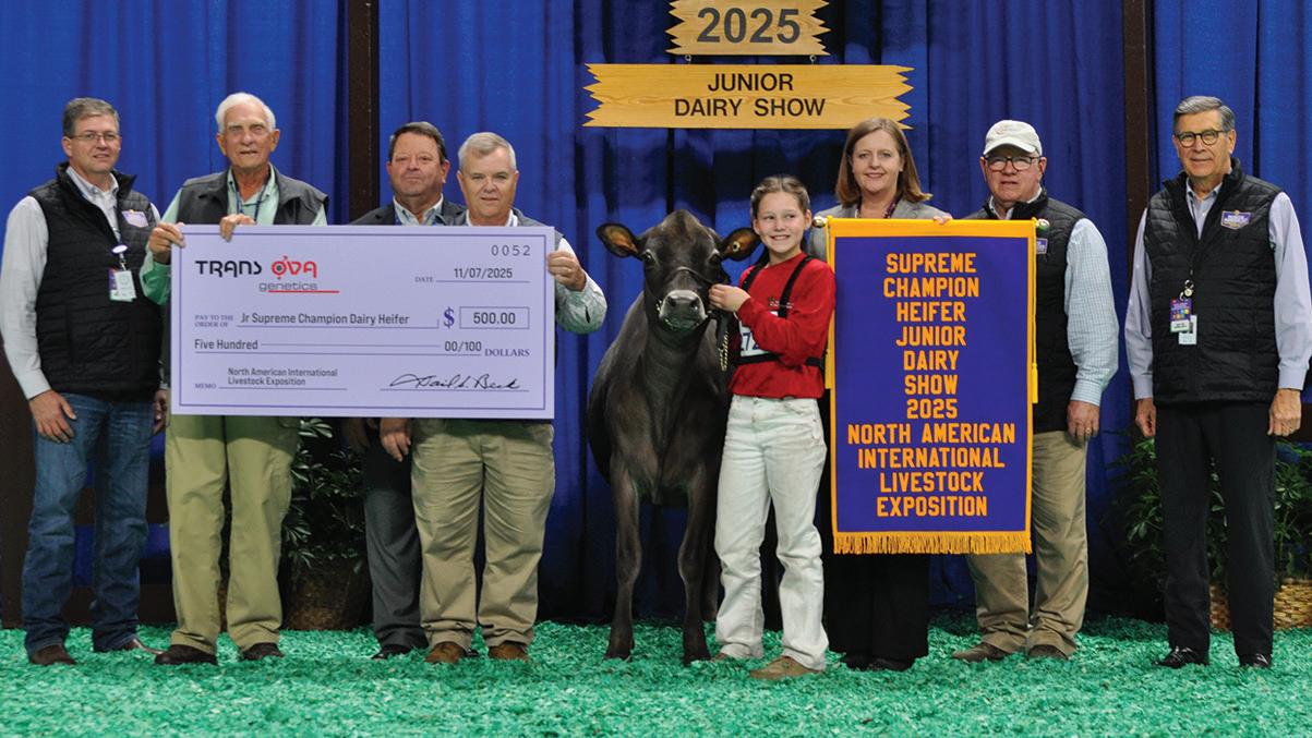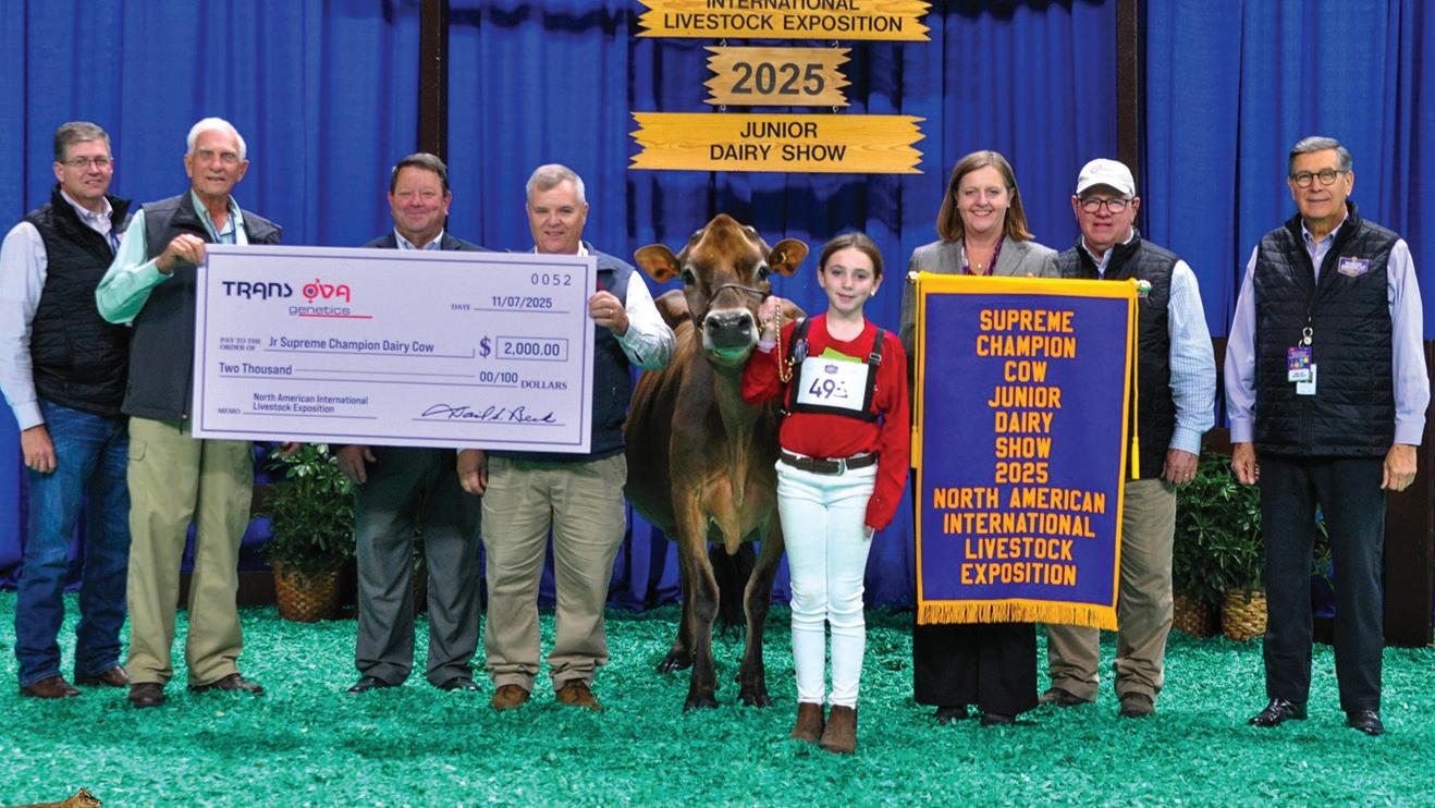 Lookout Joel She’s Spicy was named National Grand Champion at the 73rd All American Jersey Show and Supreme Champion of the 2025 North American Internal Livestock Exposition. She was exhibited by River Valley Farms, Tremont, Ill. Kevetta Colton Delilah was named National Junior Grand Champion and Junior Supreme Champion for Kyra Lamb, Oakfield, N.Y.