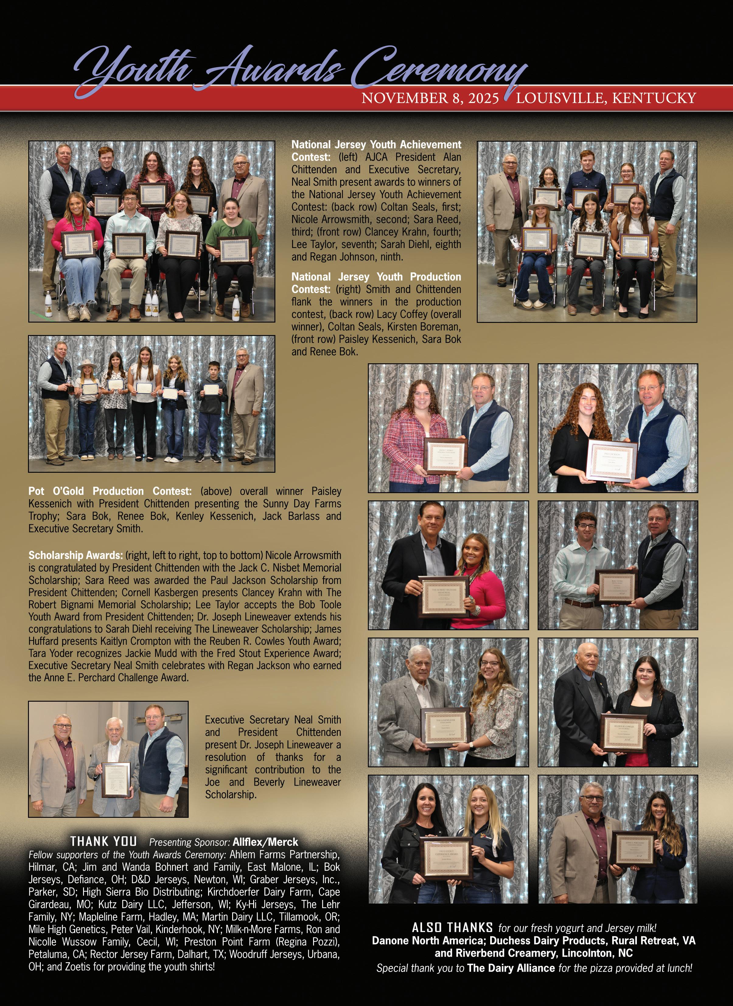 A framed print of “The Jersey” was presented to the individual showmanship winner for each division. Also presented was the Gordon Farms Trophy to the senior showmanship winner; the Wayne Lutz Memorial Trophy to the intermediate showmanship winner; and the Fred Luchsinger Memorial Trophy to the winner of the junior showmanship contest.