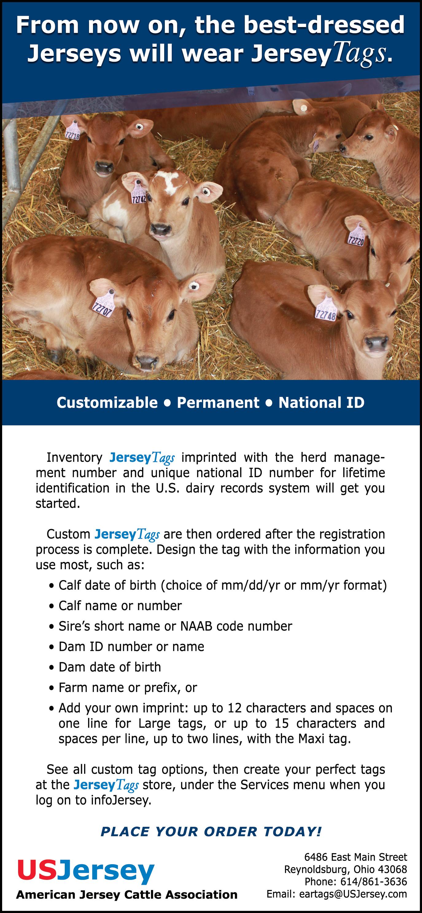 The American Jersey Cattle Association promotes the use of authentic and unaltered photographic images of Jersey animals, and disapproves of the use of any photographic images that alter the body of the Jersey animal. The American Jersey Cattle Association therefore requests that all photographic images of Jersey animals submitted for publication in the Jersey Journal contain no alterations to the body of the animal.