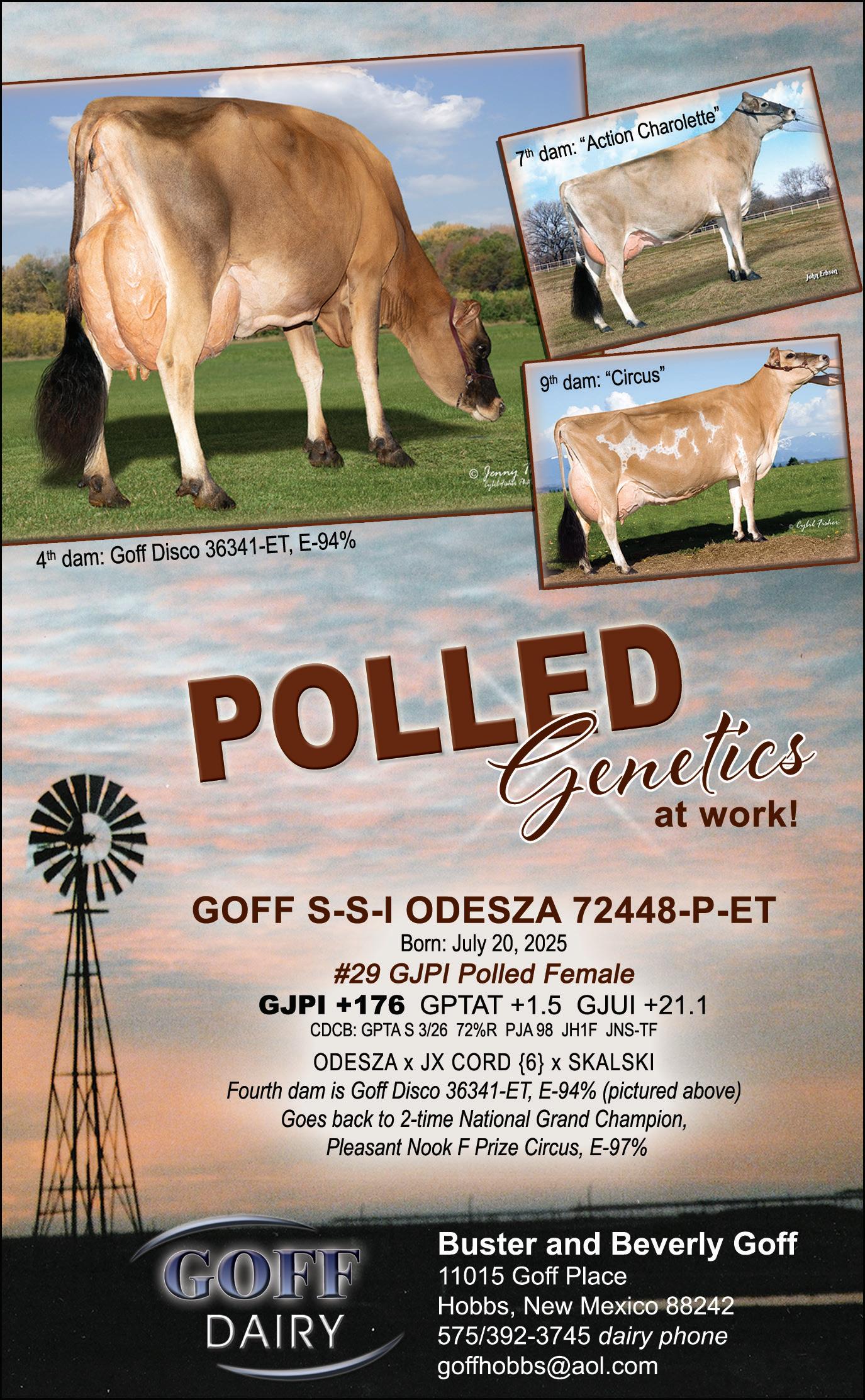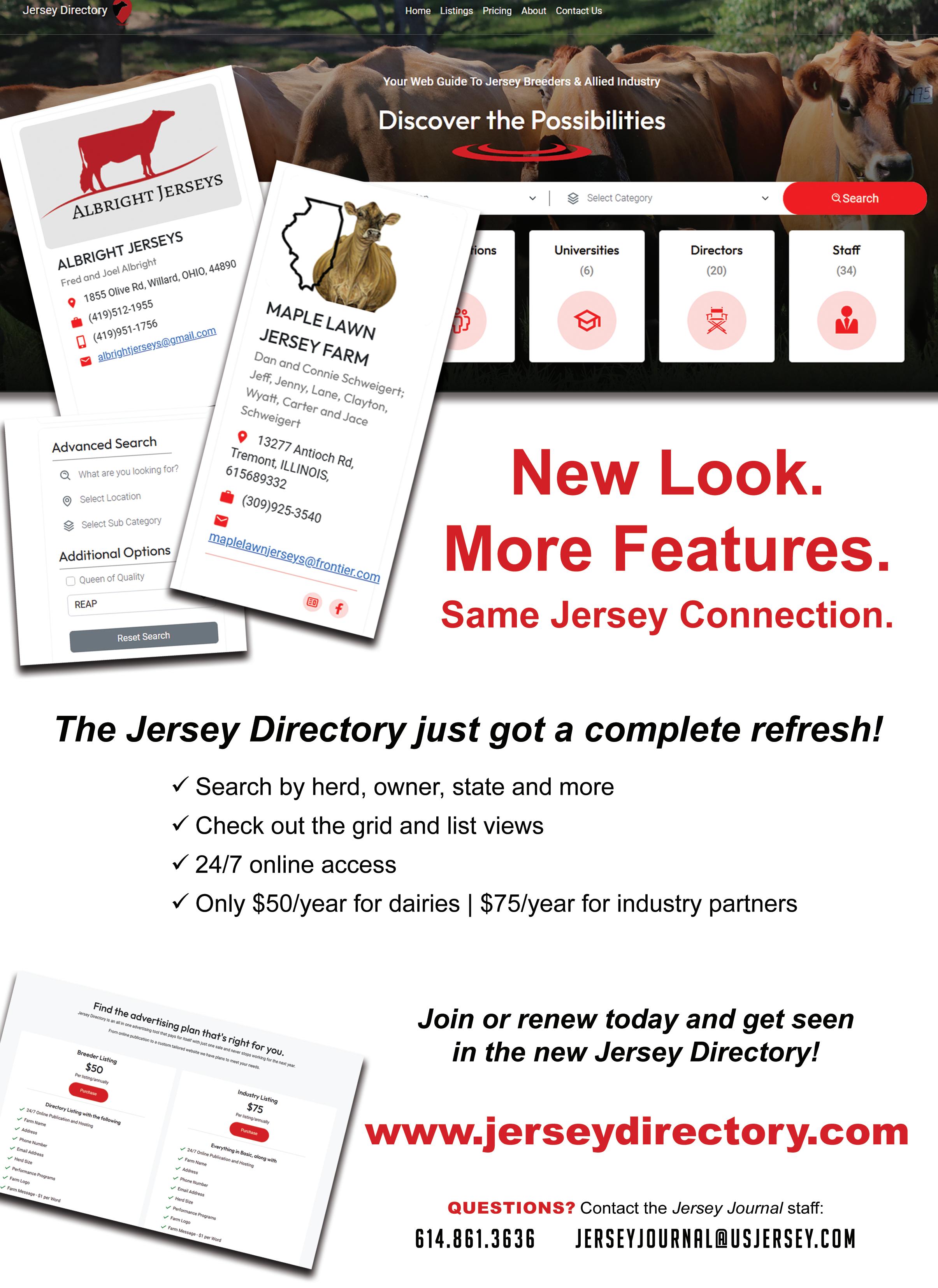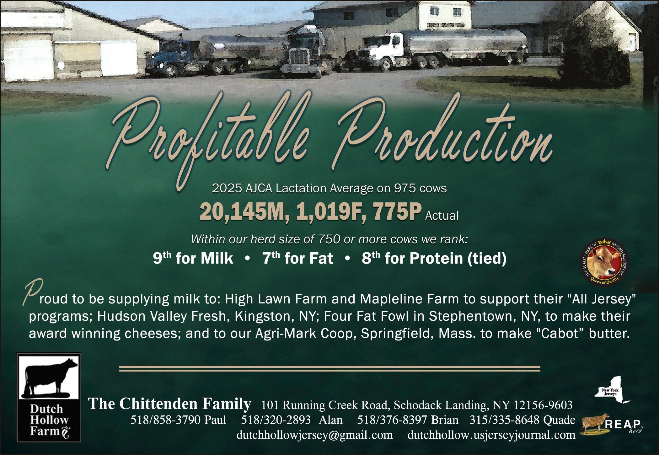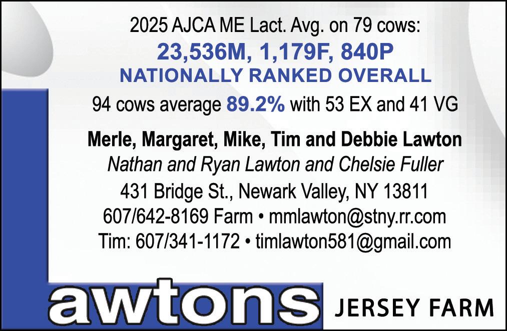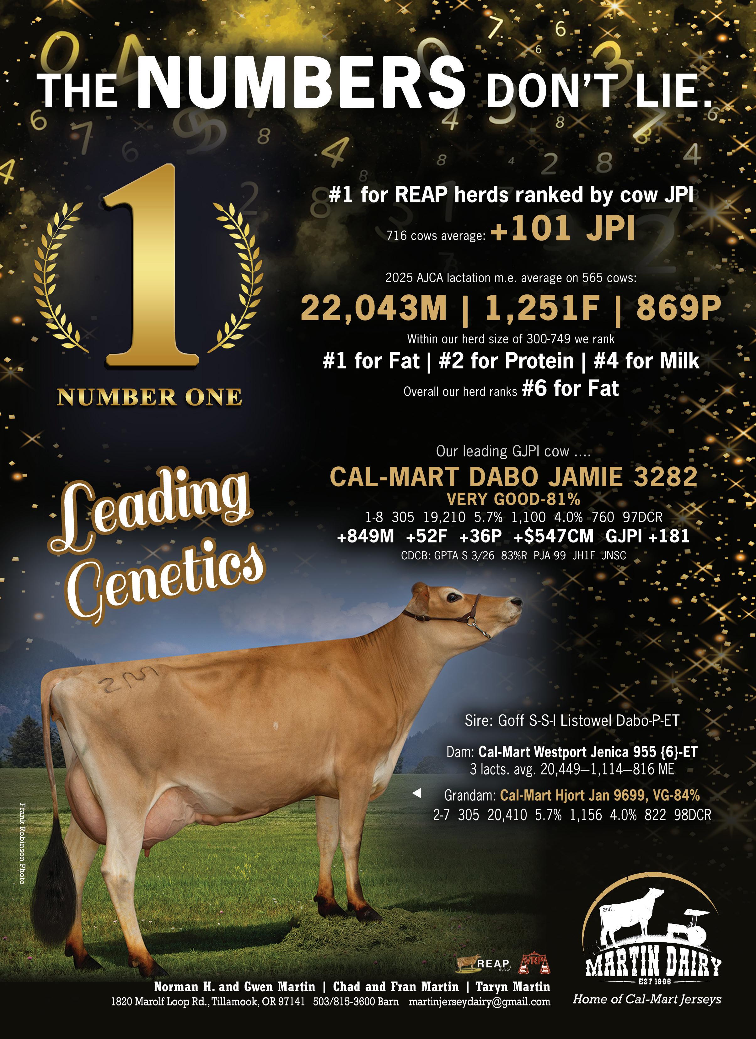 The Shenandoah Jersey herd of Boonsboro, Maryland, graces this month’s cover. Owned by JR and Jessica Stiles Hess and Janet Stiles Fulton, the REAP herd is milked using a DeLaval VMS robotic system and ranks nationally for production. In 2025, the herd achieved an AJCA lactation actual average of 22,674M, 1,053F, and 875P on 45 cows. Jessica was also honored this past year with the AJCA Young Breeder Award. She is a second generation Young Jersey Breeder award winner. Her dad, the late Tracy Stiles, received the award in 1981.