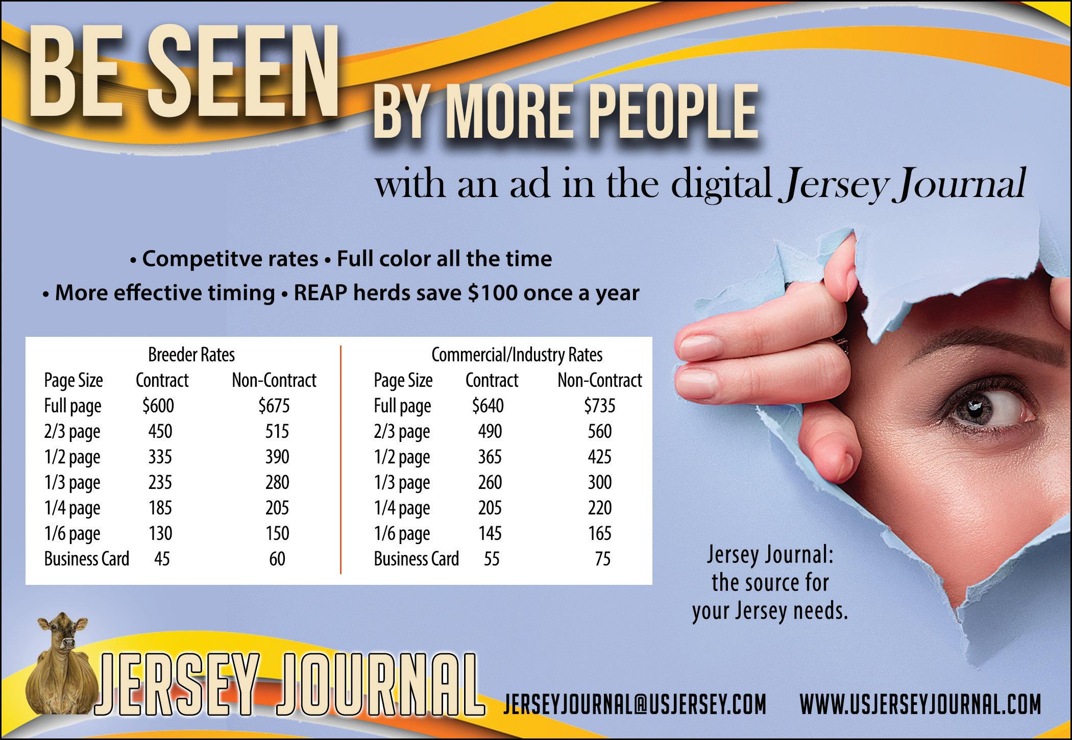 The American Jersey Cattle Association promotes the use of authentic and unaltered photographic images of Jersey animals, and disapproves of the use of any photographic images that alter the body of the Jersey animal. The American Jersey Cattle Association therefore requests that all photographic images of Jersey animals submitted for publication in the Jersey Journal contain no alterations to the body of the animal.