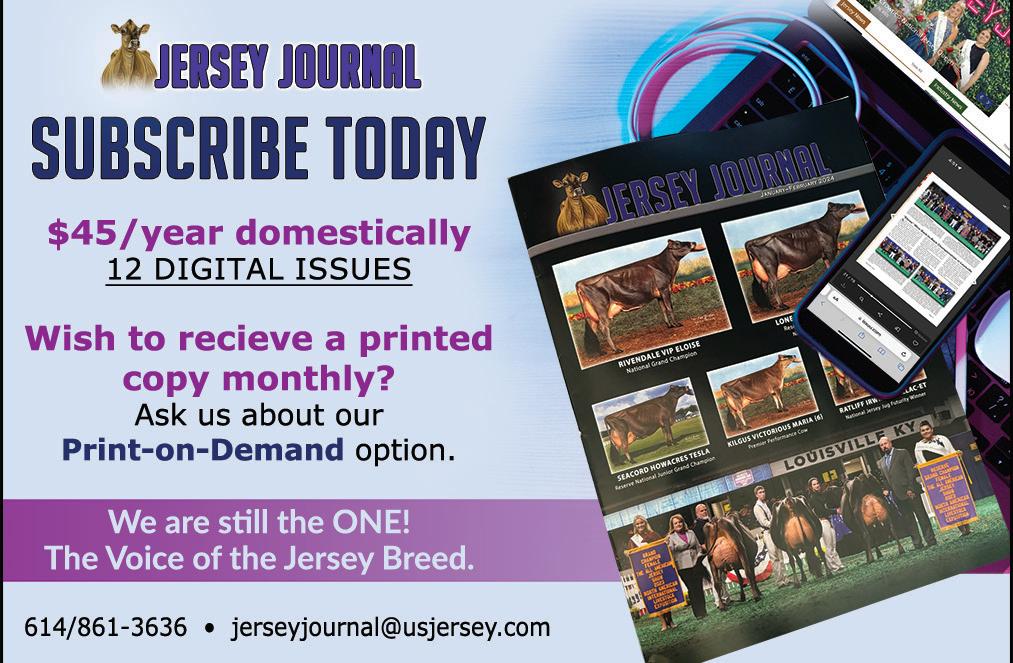 To make changes to your subscription, call the American Jersey Cattle Association at 614/861-3636. Or email jerseyjournal@usjersey. com. Please email or call with an updated email address if your address changes. Subscribers will receive periodical emails throughout the month. Have your customer number ready for a staff member.