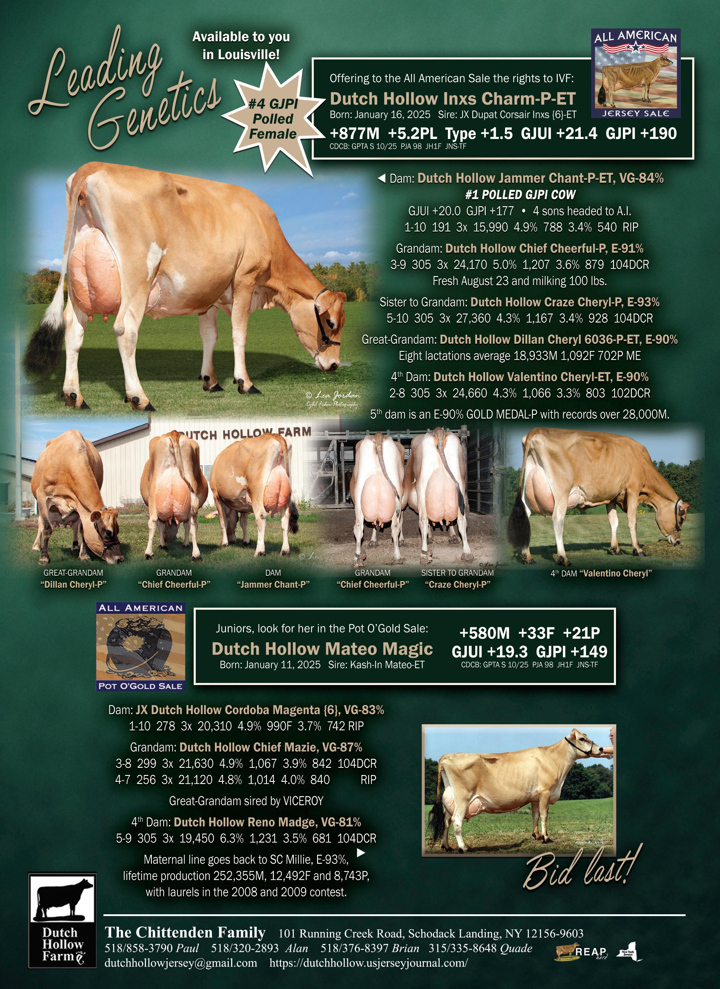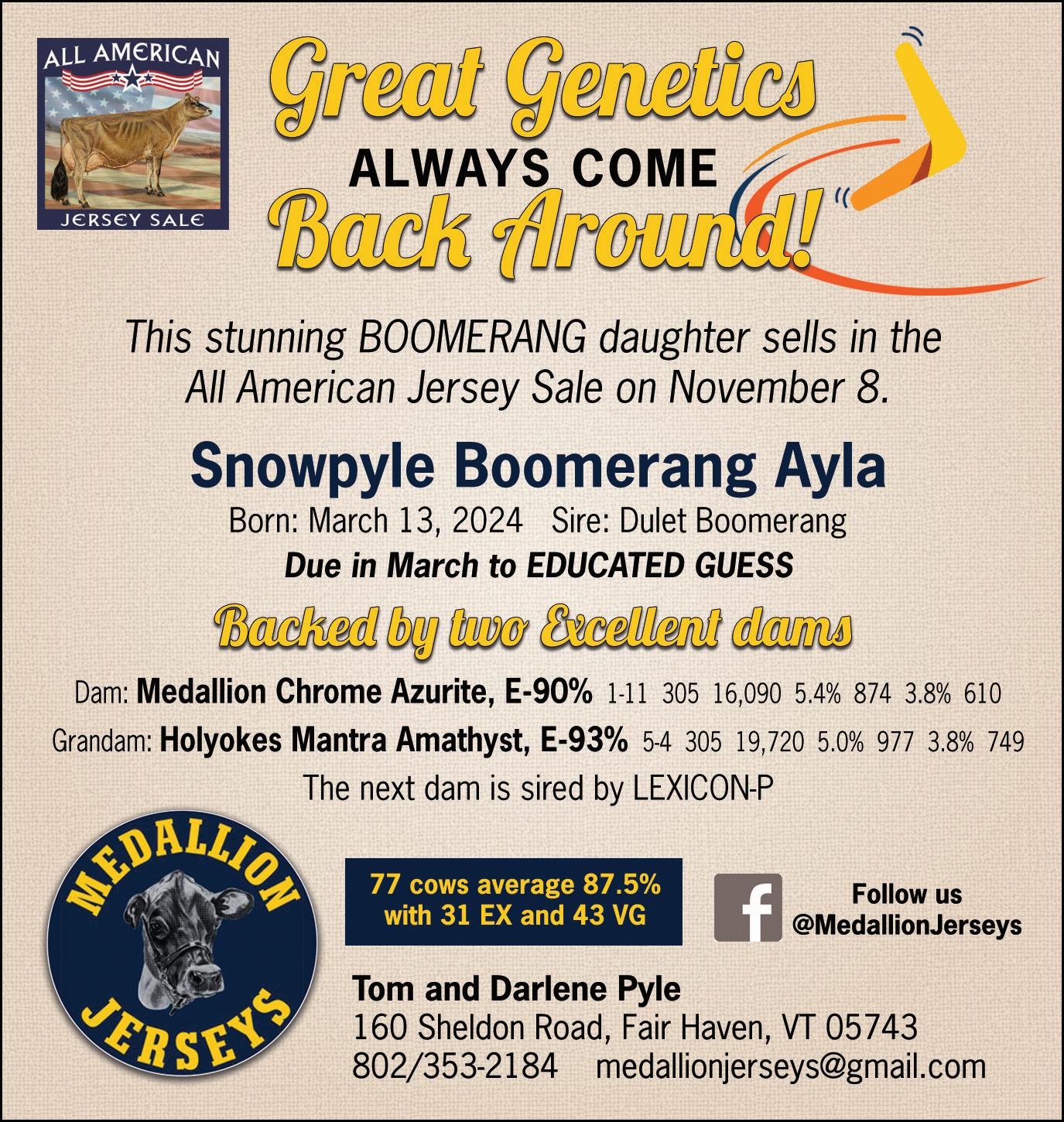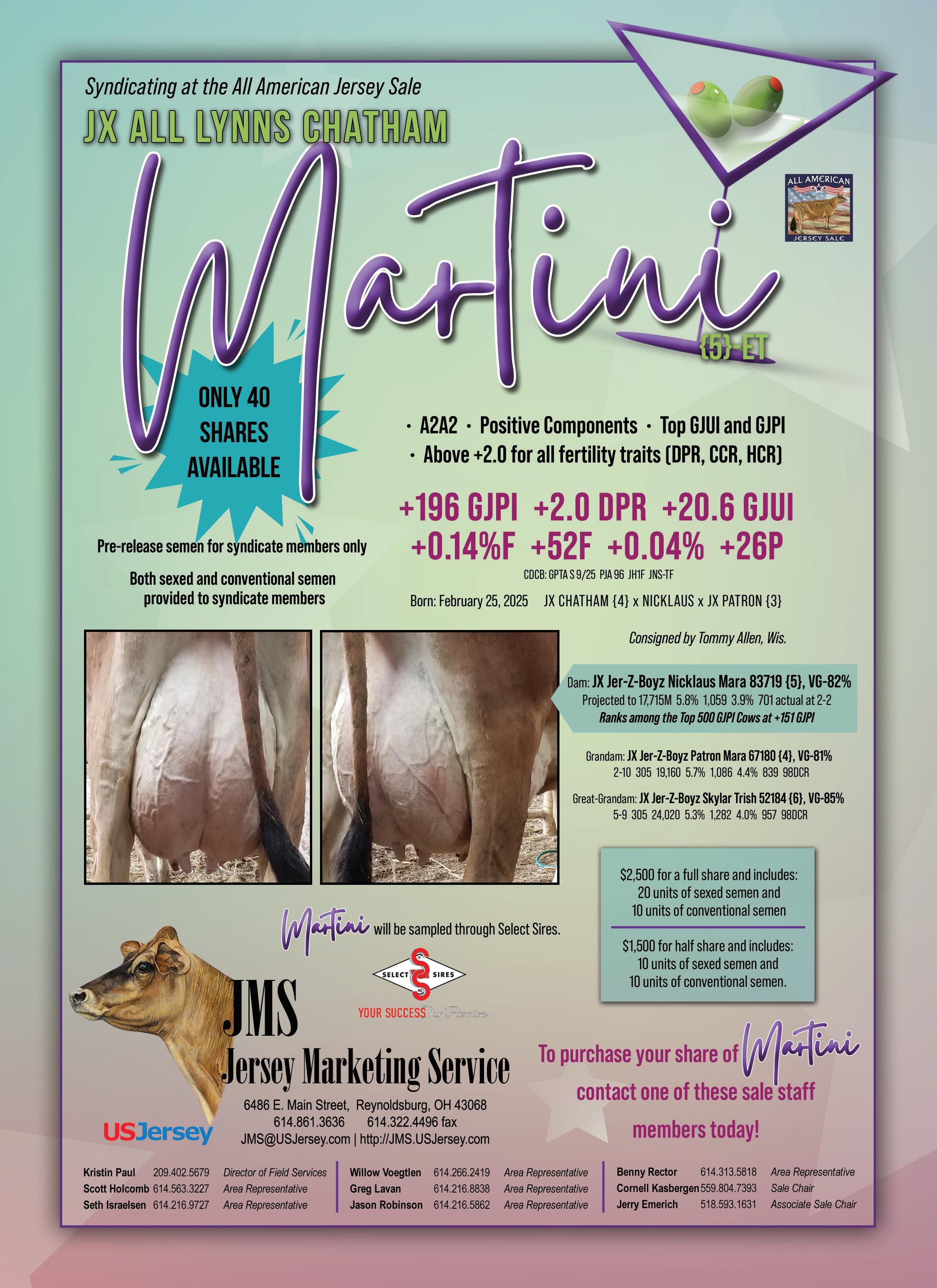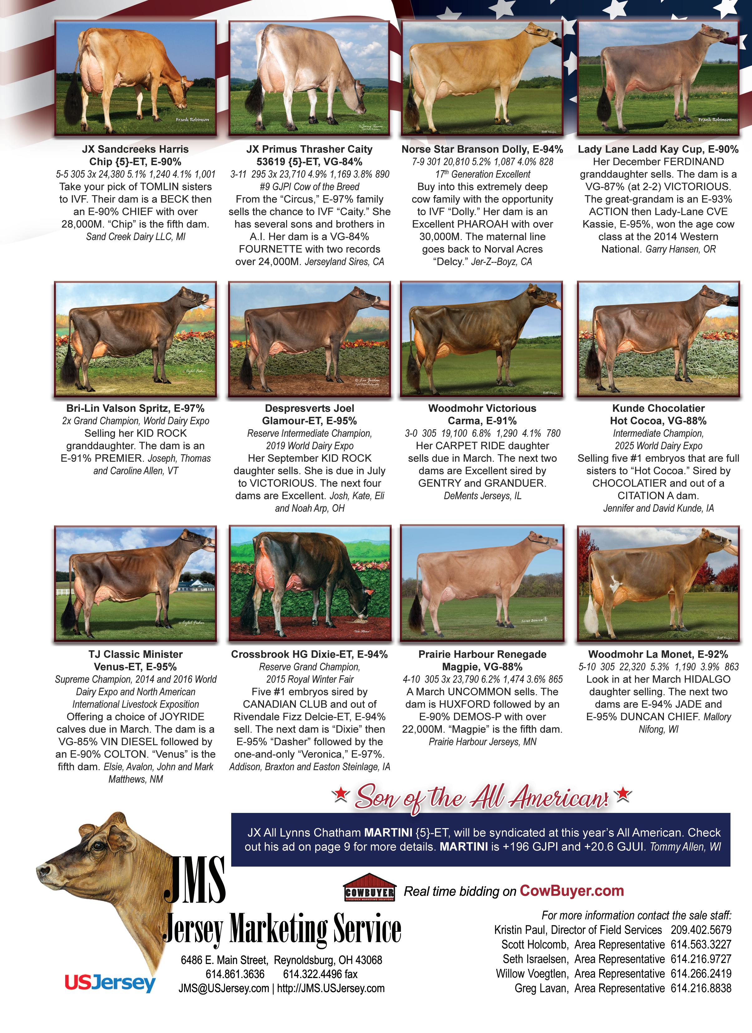 NOV. 8 ALL AMERICAN JERSEY SALE , Louisville, Ky.; 3:30 p.m. (EST); Jersey Marketing Service, sale mgr.; jms@usjersey.com; broadcast live on CowBuyer.com; Chris Hill, Thurmont, Md., auctioneer.