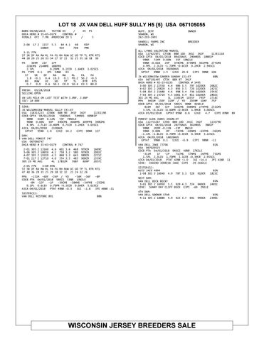 LOT 18 JX VAN DELL HUFF SULLY H5 {5} USA 067105055 BORN 09/08/2015 TATTOO H5 / DHIA HERD # 35-65-0179 CONTROL # FEMALE EFI 7.9% AMERICAN ID 5 2-06