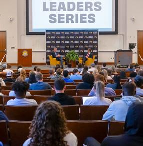 This year, our students proved that “hands-on learning” can mean just about anything, from scanning 85,000 tickets at the Super Bowl to pitching new ventures in our Hatchathon. They participated in study-abroad trips across the globe, from ramenmaking in Tokyo to espresso-tasting in Florence, reminding us that business lessons are best absorbed with a side of local cuisine. And here at home, our professional sales students held their own against the best in the nation, showing that Golden Eagles can close deals with as much energy as they bring to a football tailgate.