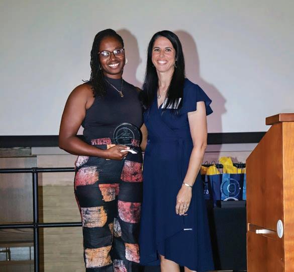 Tope (Awe) Berry ’03 (pictured, left, with Jaime (Erickson) McGaver ’99) was inducted into USM’s Athletic Hall of Fame in October 2025. Berry was an exemplary volleyball, basketball, and track and field athlete who won the Marion Chester Read Sportsmanship Award in 2003 and holds the school record for shot put and discus.