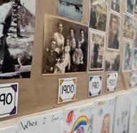 First graders explored history through photos and stories from their own families. The photos encompassed a wide range of decades, including some from the 1890s, and led to meaningful insights and discussions.
