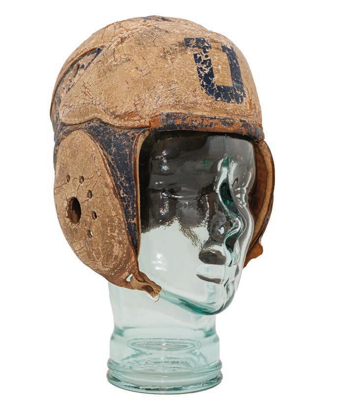This leather football helmet dates back to the 1930s, and was owned by the late Allan J. Roberts Jr. MUS'31. Learn about the role athletics has played throughout USM's 175-year history, along with other individuals, traditions, and ideals that continue to influence the school today, starting on page 11.