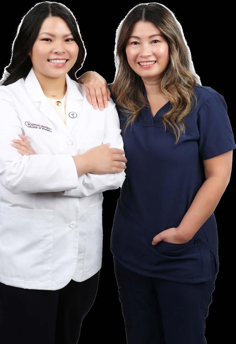 Another story in this issue captures the heart of what Roseman is all about. Phuong and Tayler Lam are a mother and daughter whose connection to Roseman spans generations. Years ago, Phuong dreamed of becoming a pharmacist but put her plans on hold to start a family. She later became part of Roseman's very first MBA class in partnership with Dignity Health. Now her daughter Tayler is here, pursuing her own dream of becoming a pharmacist. Their story is a reminder that education can ripple through families, shaping not only careers but also values, such as perseverance, service, and the desire to make a difference.