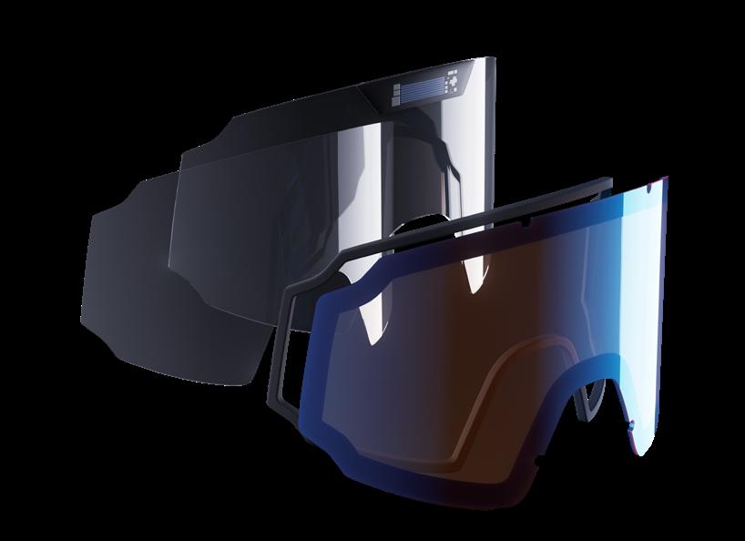液晶一体型のレンズがNEVESに仲間入り! 独自のソーラーパワーレンズテクノロジーが電圧を 発生させ、レンズの色を太陽光にあわせて瞬時に 調整。この革新的な技術で、目まぐるしく変わる天 候下でも最適な視界が得られる。