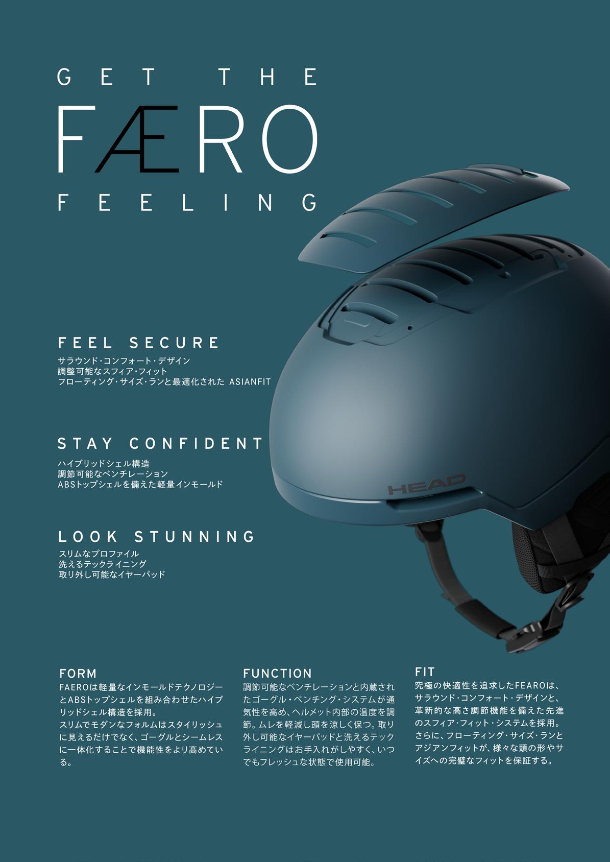 新登場のファエロは、安全性とスタイルを革新的 なデザインで融合させた。高さ調整機能を持つ進 化したスフィア・フィットは完璧なフィット感と比類 のない快適さを保証し、ゴーグルとのシームレス なフィッティングも約束する。