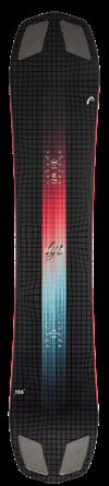 オーソドックスなキャンバーとフラットキャンバーをミックスしたハイブリッドキャンバーシェイプ。ビンディン グ下のキャンバー形状が優れたエッジホールドを生み、その間のフラットキャンバーがもたらす反応の良さ を楽しめる。