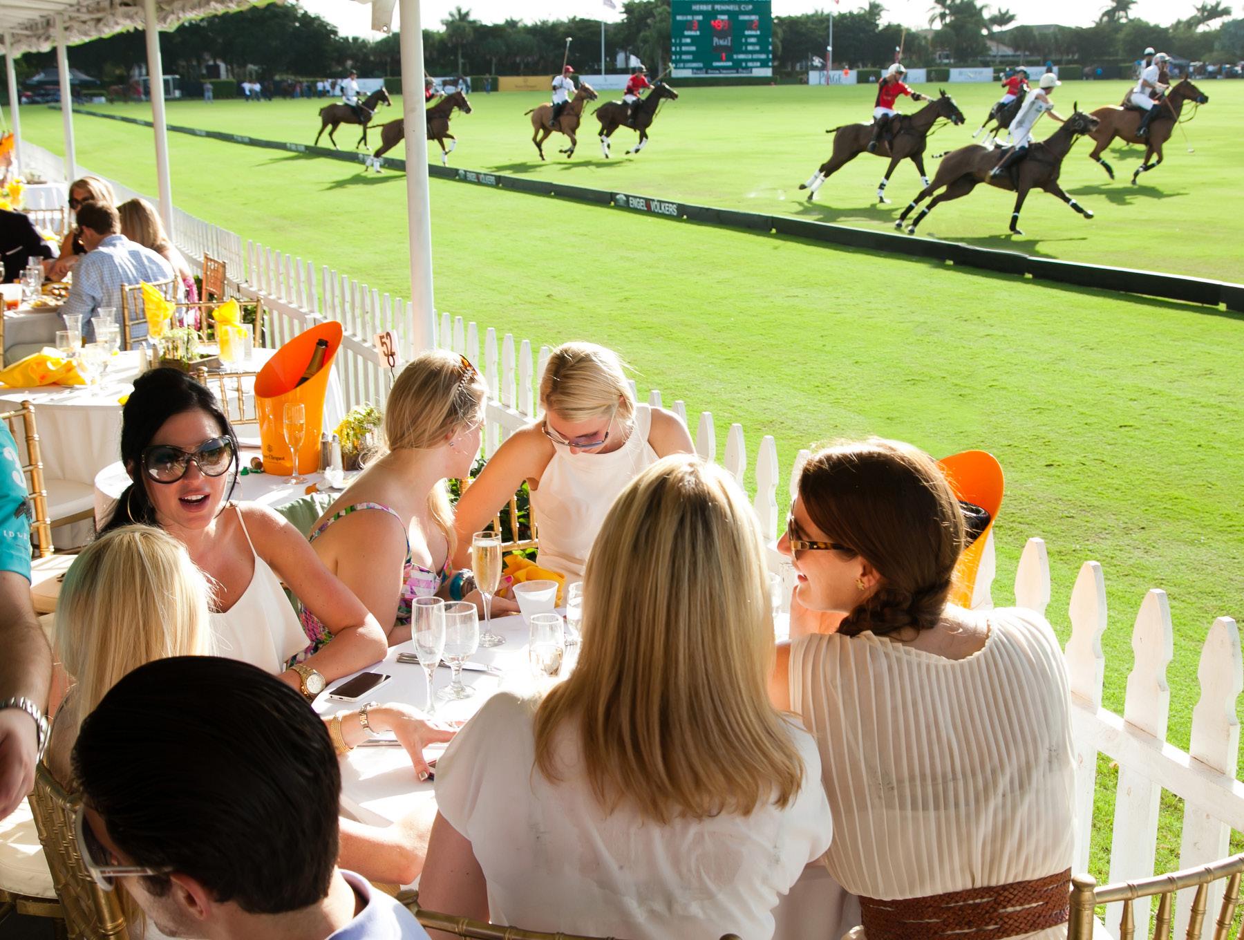 Polo matches are open to the public, with a wide range of accommodations including elegant grandstand viewing, field tailgating, stadium seating, fieldside champagne brunch at The Pavilion, and exclusive sponsor boxes overlooking the impressive Engel & Völkers field.