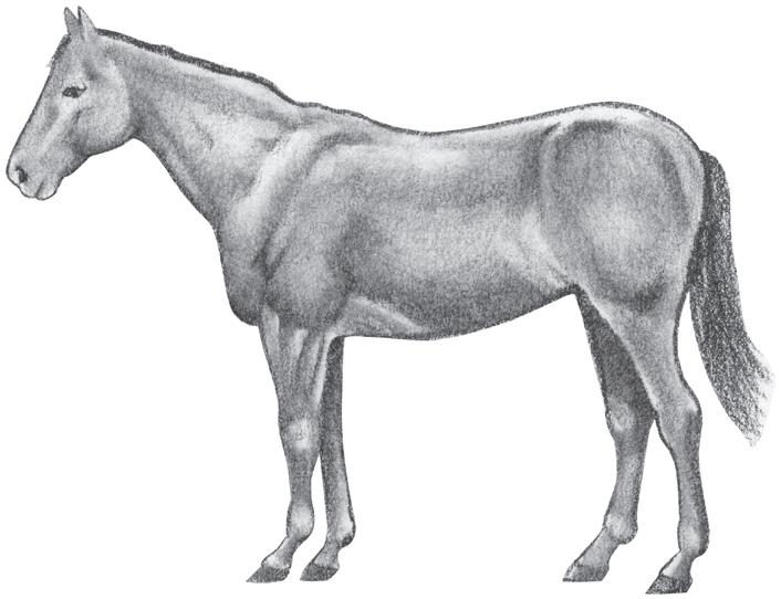 Back is flat (no crease or ridge); ribs not visually distinguishable but easily felt; fat around tailhead beginning to feel spongy; withers appear rounded over spine; shoulders and neck blend smoothly into body.