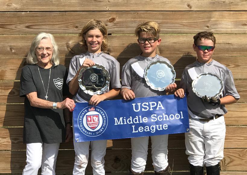 right into a Middle School Tournament hosted at Marlan Farm. I had my first tournament win with new friends that I had never met before and it exploded from there. I had an interesting perspective on the game as our team was without a doubt composed of the smallest boys in interscholastic polo. Nonetheless, Kelly taught us how to play as a team and challenge ourselves to get better every day. Over time, we were able to work so well together that we knew each other’s plays before they even happened. That year we made it to Southeastern Regionals, but lost in the finals. After that game we developed a bond and combined passion to grow together and win a national title.