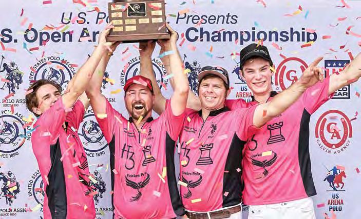 hard-fought U.S. Open final. Injuries on both teams brought in substitutes Jack McLean (Fawkes Polo) and Shane Rice (Texas Aggies). Fawkes Polo ultimately claimed the win, taking home the prize money and hoisting the perpetual trophy. In the United States Arena Handicap final, Prestonwood/Broken Taco (Andrew Scott, Vaughn Miller Jr., Vance Miller III) secured its second consecutive title with a win over Equus Hotel Waikiki/McFaddin Ranch (Devon Dailey, Tiamo Hudspeth, Steve Krueger).