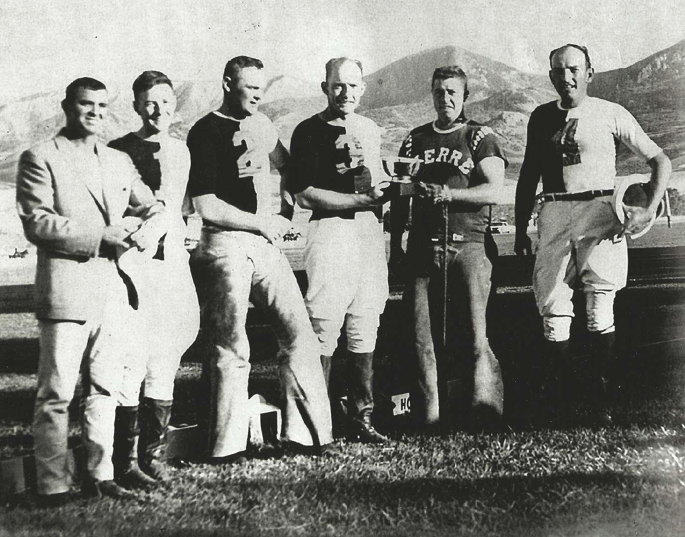 The Argentina squad that won the Olympic Championship and the Cup of the Americas in 1936: Andres Gazzotti, Jack D. Nelson (captain), Roberto Cavanagh, Luis Duggan, Manuel Andrada, Enrique Alberdi and Diego Cavanagh.