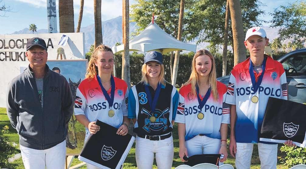 Danny Walker congratulates NYTS All-Stars Petra Teixeira, Molly Agee, Cory Williams and Bayne Bossom at Empire Polo Club in Indio, California.