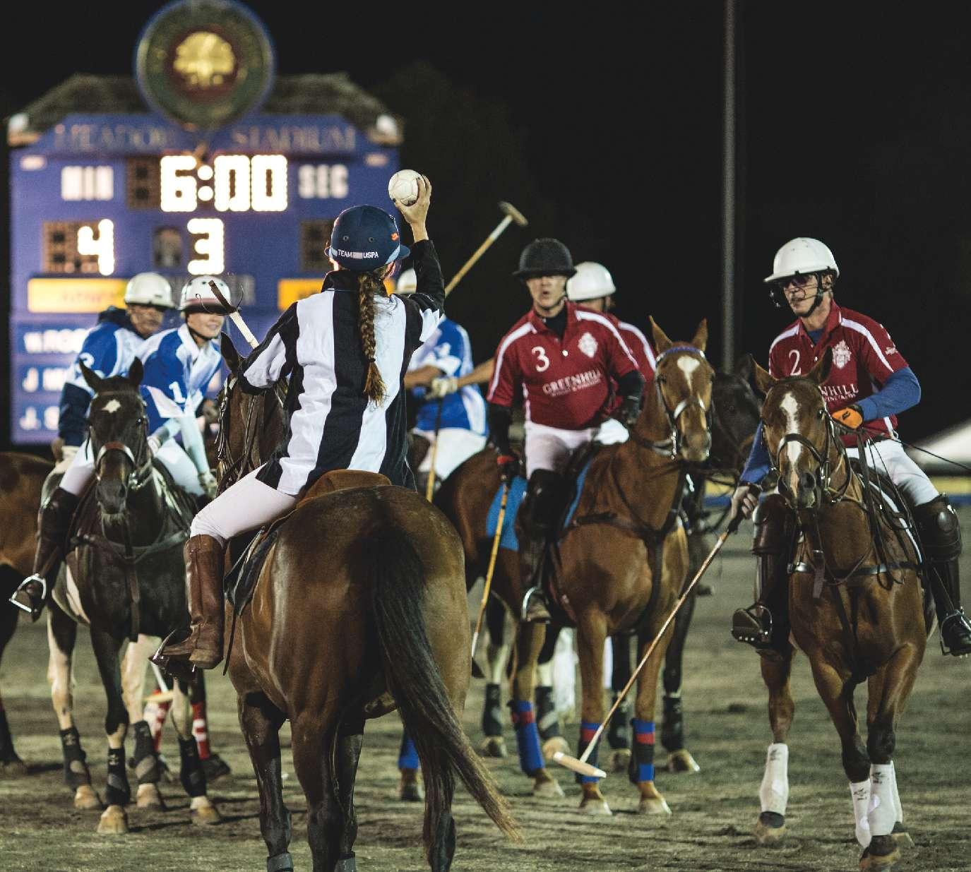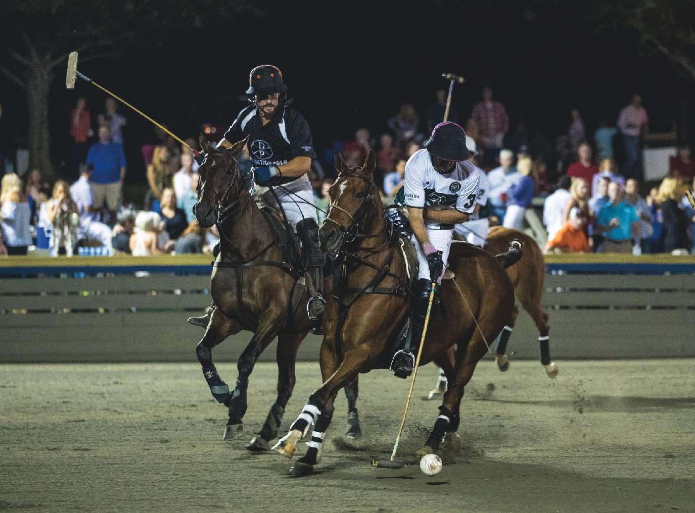 break” under the lights in a beginner 6 p.m. featured match. Where else can a novice polo player have the opportunity to impress their friends and family in front of a multitude of fans?