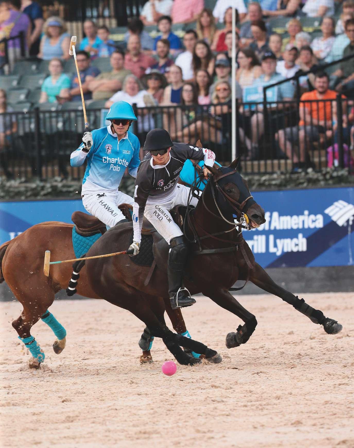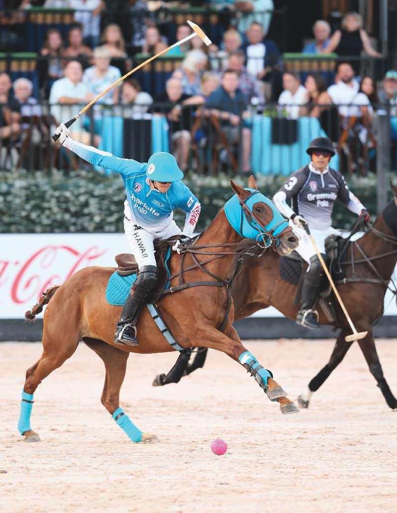 “We continue to elevate the polo experience and grow our family-friendly environment,” said Ross. For starters, any youngster who returns a ball that has flown out of the arena is rewarded with candy—an astute and worthwhile bribe all arena clubs should consider adopting. “We have a massive tug of war in the arena at halftime and the players from the 7 p.m. game will anchor each side,” continued Ross. “Then the club mascot, Polo Bear,leadsthekidsonatwo-lap