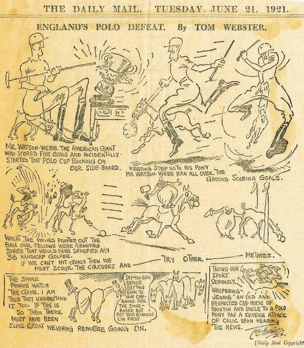 After the U.S. took the first match, The Daily Mail ran a series of cartoons of Webb. One caption read, “Mr. Watson-Webb, the American giant who scored five goals and started that polo cup rocking on our side board.”