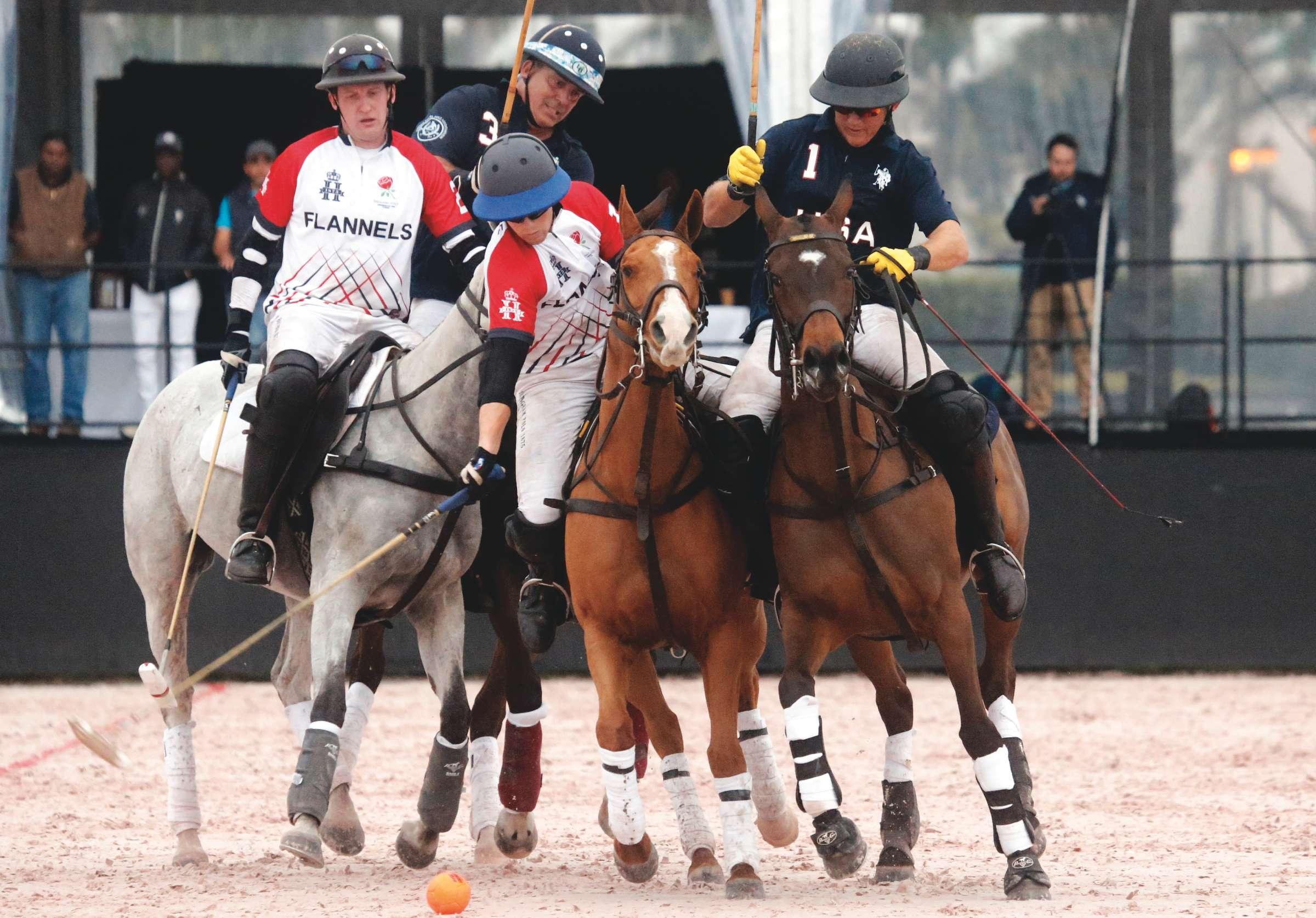 The English players were playing several combinations to determine how to line up the team. In outdoor polo, Egan and Holman typically played Back, while Walford played No. 3. McMullin, expected to be the substitute, is the only forward.