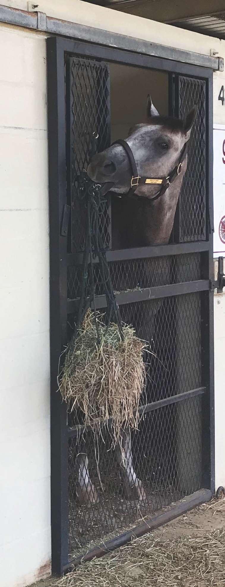 weanlings, and had access to fresh forage and hay. We are not sure why this particular horse began cribbing. It may be partly genetics and the way he responded to stress. As a foal he had a short period of stall rest and confinement. No one noticed any abnormal behavior at that time, and it’s difficult to know whether or not this influenced his behavior,” she says.