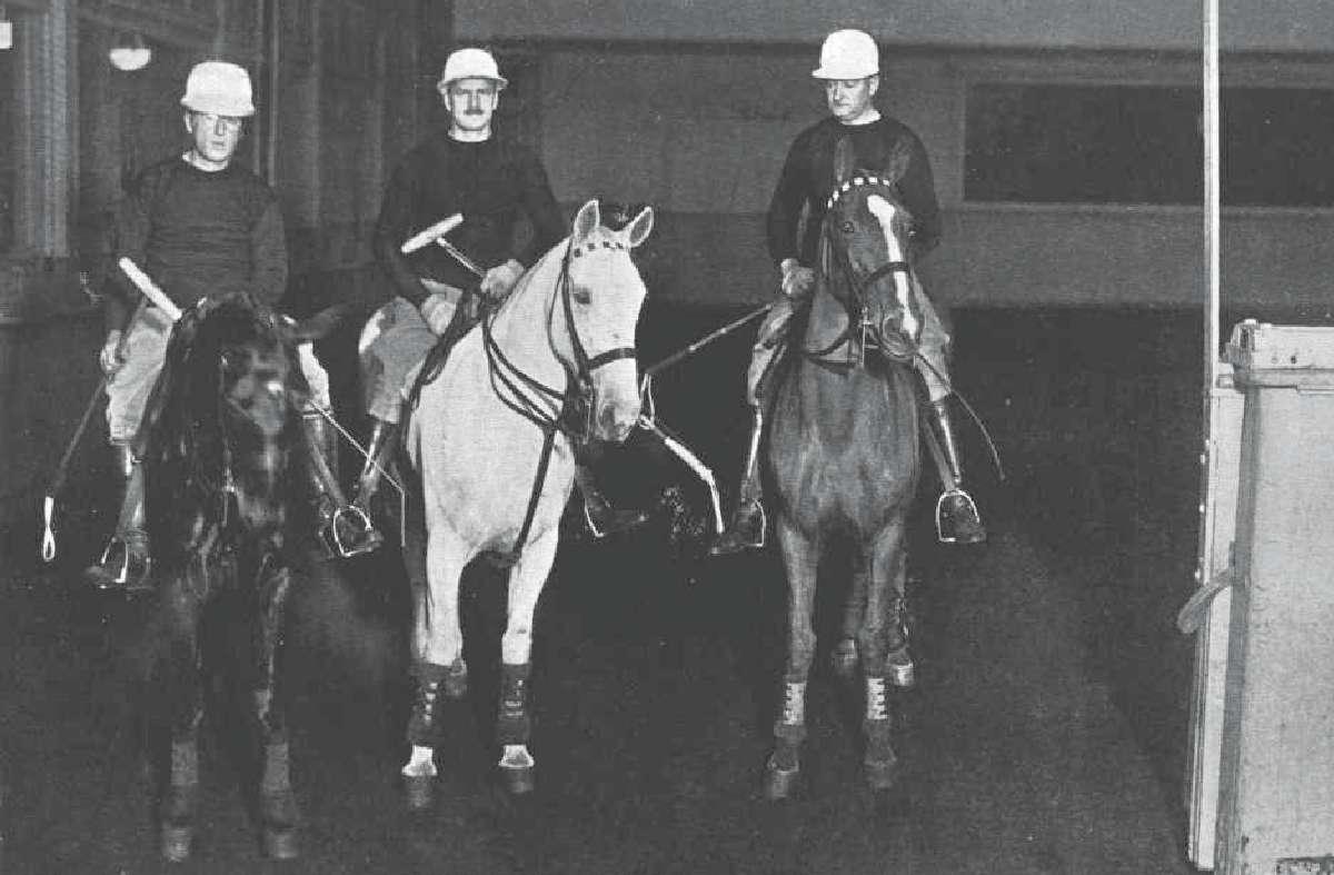 The Brits ended up sending eight ponies, which sailed on the Mississippi, while the players sailed on the Olympic. After a brief delay because of bad weather, the players—F.W. Egan, Capt. W. F. Holman, Capt. F. L. Walford and Capt. H. McMullen—arrived the evening of Feb. 7, and were met on the dock by Averell Harriman, George Sherman, Robert Grannis, George Matthews Jr. and Gen. Mortimer Bryant. The English players were brought to the Waldorf-Astoria Hotel where they stayed during their trip. Arrangements were made for them to practice the next day at Squadron A Armory, located at Madison Avenue and 94th Street in New York City. They were also honored at a luncheon at the University Club given by Thomas Leaming, president of the Riding and Driving Club of Brooklyn.