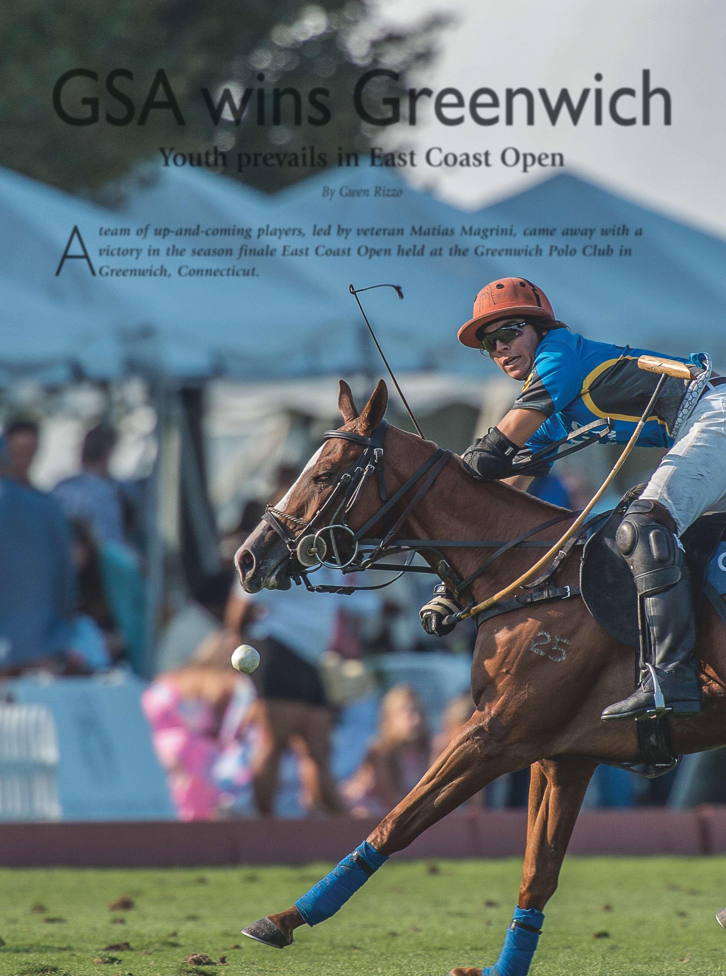 POLO Players’ Edition (ISSN #1096-2255) is published monthly by Rizzo Management Corp. 6008 Reynolds RD, Lake Worth, FL 33449 for U.S. Polo Association, 9011 Lake Worth RD, Lake Worth, FL 33467. Periodicals postage paid at West Palm Beach, FL and additional mailing offices. (USPS: 079-770).
