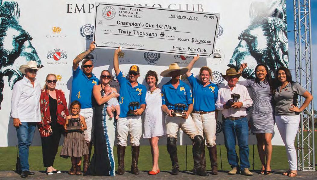 have done over the summer. Most clubs when they are not playing polo are basically locked down and there is nothing going on. Here, we are constantly making improvements, so when the players come back each year there is always something new for them to see. This year it’s our pizza kitchen. The players will have another place to eat at the club which is really fun—an outdoor bar with TV screens.” said Kevin Ittig, Empire Polo Club operations manager. All of this combined with consistently picture-perfect weather are the factors that have made Empire Polo Club such a success. “We have three games a week, one practice and two tournament games. I think we had one rain day last year and one rain day the year before—and we played on that rain day! We sanded beforehand, stomped divots, sanded after and it was a great day!” said Polo