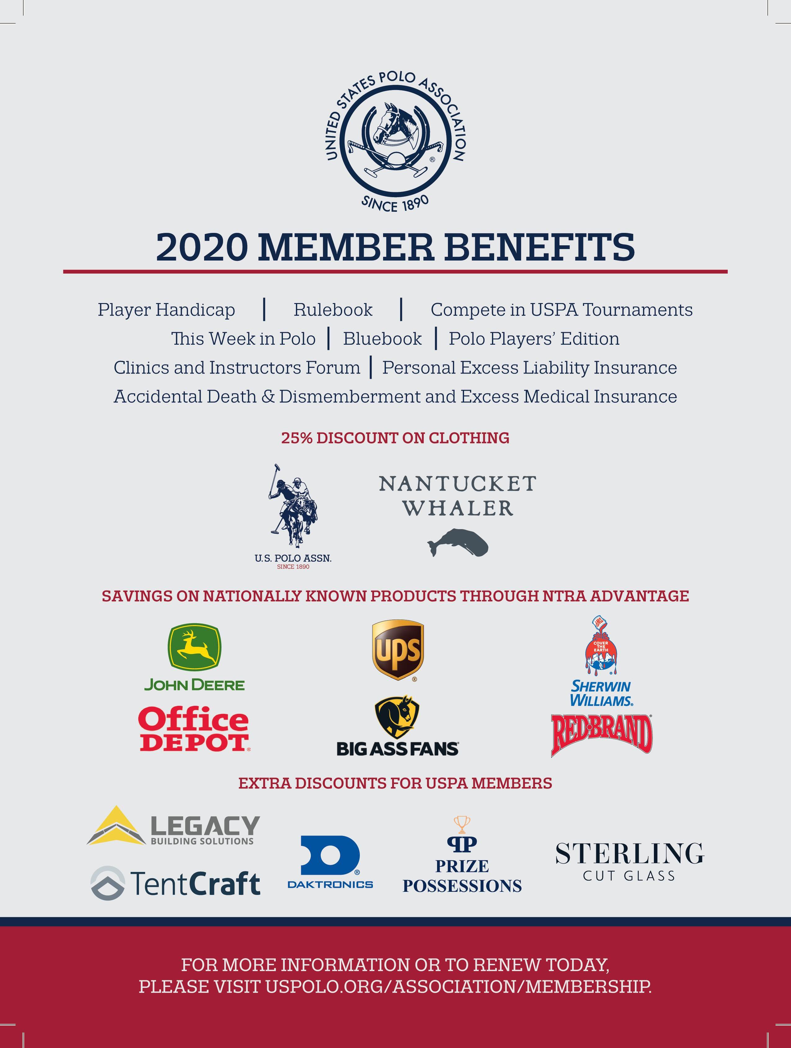 This year, USPA member clubs will once again be eligible to win a John Deere TS Gator. The USPA member club with the highest cumulative USPA Polo Plus Discount Program dollar amount spent by its members during 2020 will receive the John Deere TS Gator Grand Prize. Second and third places will also be eligible for prizes. In addition, all USPA members that utilize the discount program with any of the participating companies will be entered into a drawing for a $500 Tackeria Gift Certificate. Participating companies include: John Deere, Sherwin Williams, UPS, Nationwide, Redbrand and Office Depot. USPA members are eligible for significant savings from these companies through NTRA advantage. To enjoy the benefits of one-stop buying, call toll-free at 866-678-4289.