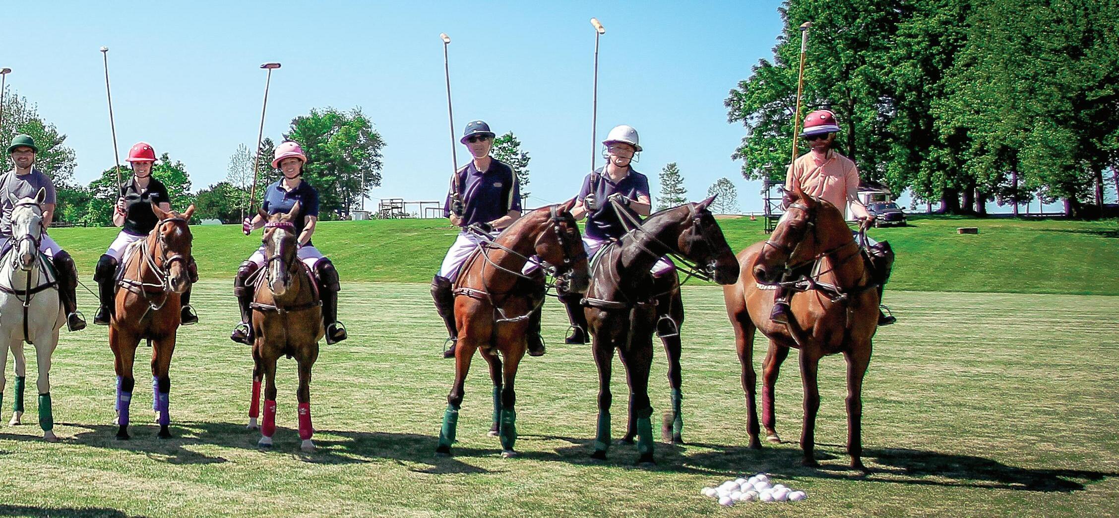 Liz Brayboy, second from left, takes the field with her team at Skaneateles Polo Club in Skaneateles, New York.