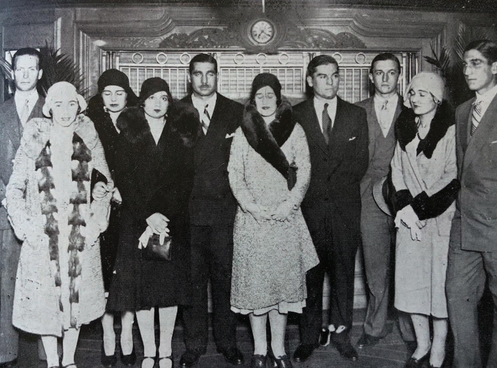 This photo was likely taken at a Manhattan hotel in early April during the Argentine team’s New York stopover. This picture includes Alfredo Harrington, Juan, José and Martin Reynal, Mrs. Harrington, Mrs. Reynal, three señioritas Reynal and an unidentified individual, far right.