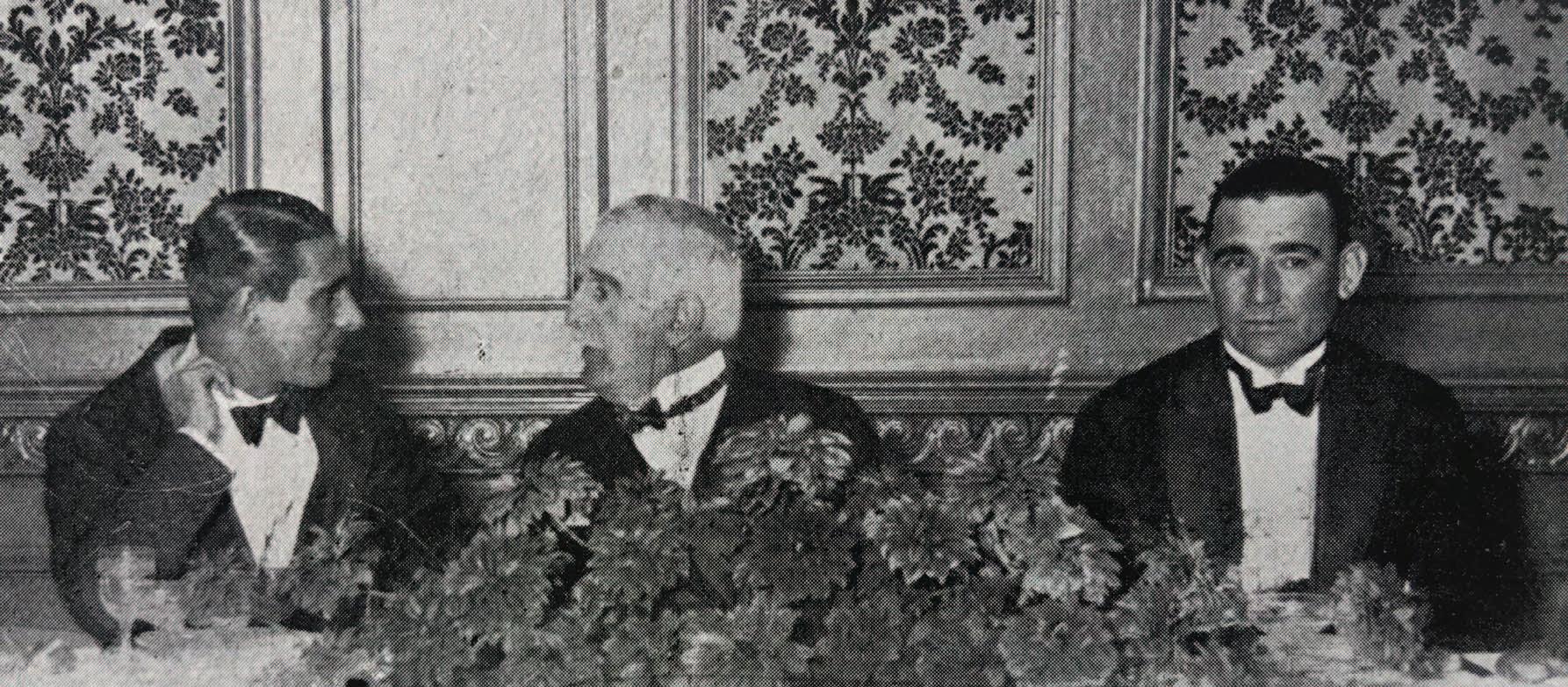 Upon their return to Buenos Aires, a banquet was held for the triumphant Santa Paula team which was presided over by Miguel Alfredo Martínez de Hoz, a renowned landowner (Estancia Chapadmalal) as well as a one-time polo player and a former president of the Asociacíon Argentina de Polo (1923-1925). In this photo, he is asking Juan Reynal, center, if Douglas Fairbanks played polo, while Manuel Andrada, right, listens quietly.