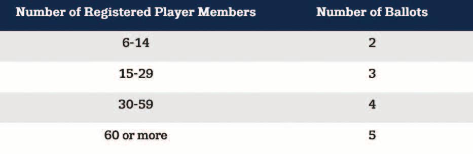 • Each delegate will receive the number of ballots set forth below based on the number of registered player members in the active member club the delegate represents: