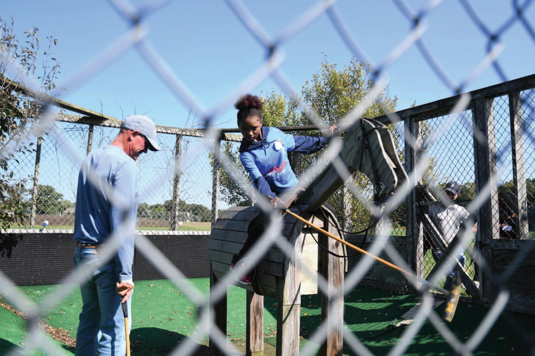 The interactive curriculum for the day included three stations: hitting cage, foot mallets and a mounted portion, which allowed students to hit a ball off a horse. Several University of Michigan and