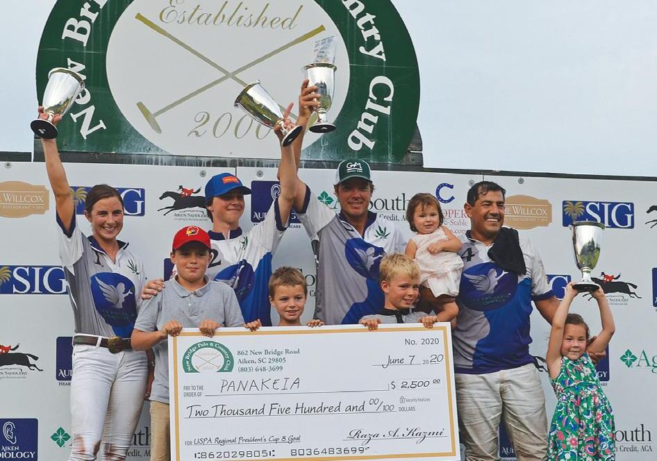 Aiken Polo Club hosted a successful NYTS tournament with six competitive teams. Creative Financial Strategies (Hope Arellano, Madison Jordan, Chris Veitch, Briana Jordan) secured the victory over two days of tournament play, defeating Aiken Saddlery (Summer Kneece, Reagan Leitner, Robyn Leitner, Virginia Gwinn) in the final.