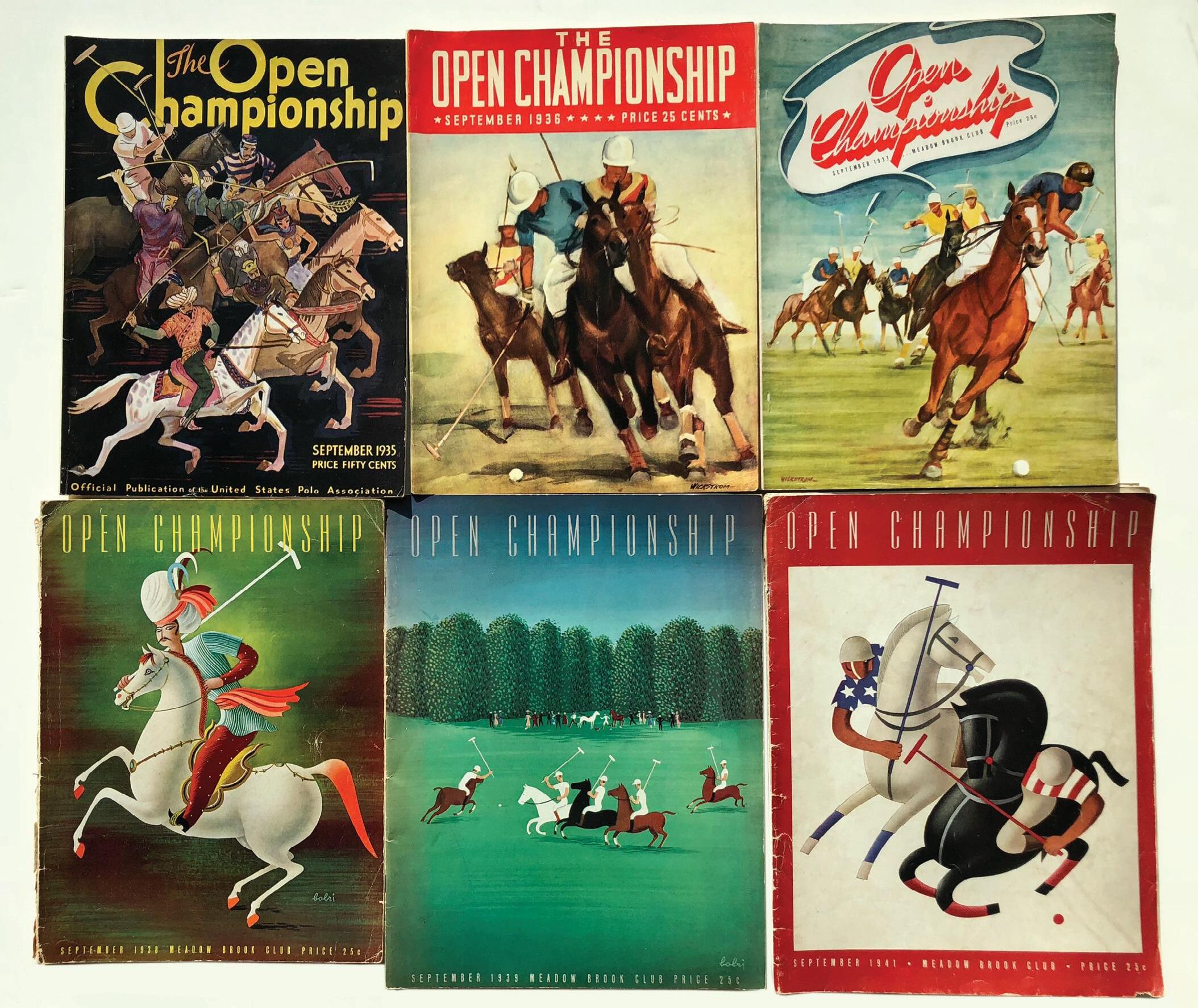In terms of the “usual suspects,” the aforementioned Meadow Brook Club needs to be singled out as one of the organizations that played a pivotal role in the creation of the modern-day polo program. Illustrative of a breakout program was the one for the 1924 Westchester Cup, which was large (7¾ inches by 11¼ inches), which contained a staggering 130 pages and was replete with game specifics (e.g. team line-ups, player biographies, a list of boxholder occupants, abbreviated rules of the game, etc.), photographs, feature articles and advertisements. Other early pioneering programs included those for the 1923 and 1926 Open Championships that sported full-color covers.