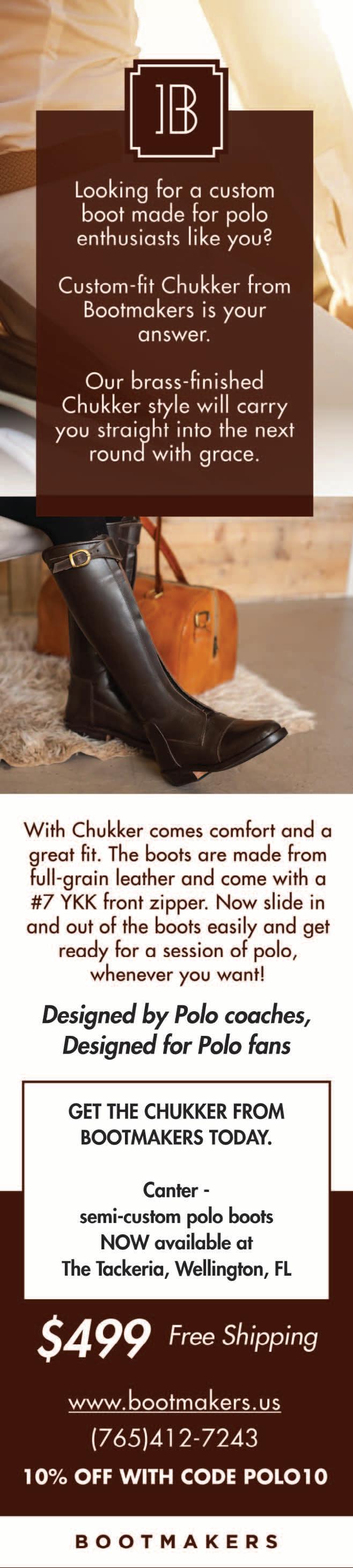 POLO Players’ Edition (ISSN #1096-2255) is published monthly by Rizzo Management Corp. for U.S. Polo Association, 9011 Lake Worth RD, Lake Worth, FL 33467. Periodicals postage paid at West Palm Beach, FL and additional mailing offices. (USPS: 079-770).