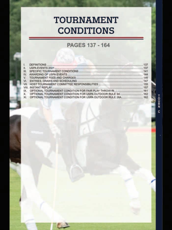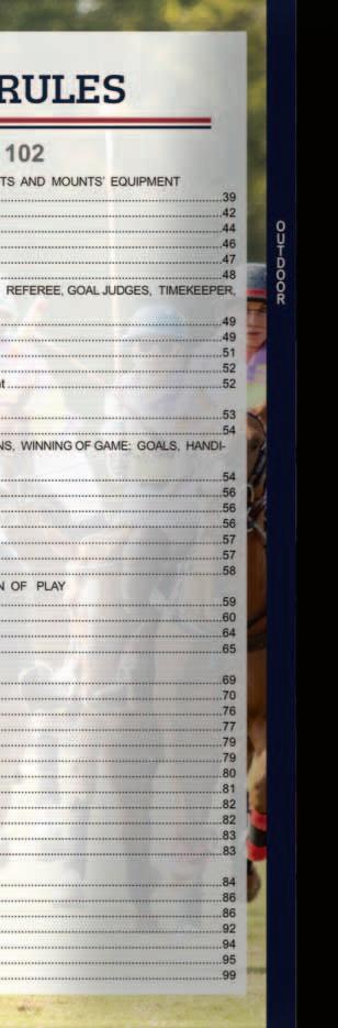 ©Copyright 2021 by United States Polo Association.. No part of this issue may be reproduced by any mechanical, photographic or electronic process without written permission of the publisher. Paul Brown illustrations are ©2018 and are reprinted by permission of Paul Brown Studios, Inc., P.O. Box 925, Hedgesville WV 25427. Subscription rates: $45/one year, $78/two years. Other countries (air mail), $78 drawn on U.S. bank/one year, $144 drawn on U.S. bank/two years. (GST:134989508). Subscription problems call (561) 968-5208.