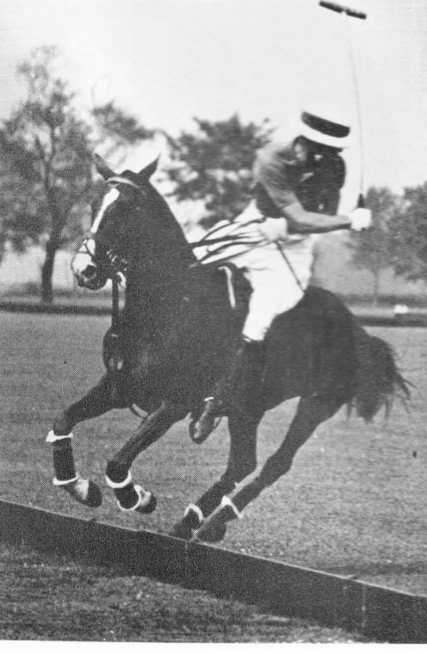 One of the most common sins is, of course, striking the pony with the mallet. Frequently, it results from an unintentional use of the spur at the moment when the rider twists in his saddle to execute or finish a stroke. Occasionally, a pony carries the rider so far forward that the latter’s heels bump the pony on the elbows. There are of course, many causes, but when a player discovers that a pony is developing the habit of shying from the ball, he may take it for granted that somehow he is inflicting pain or discomfort upon the pony at the moment of striking.