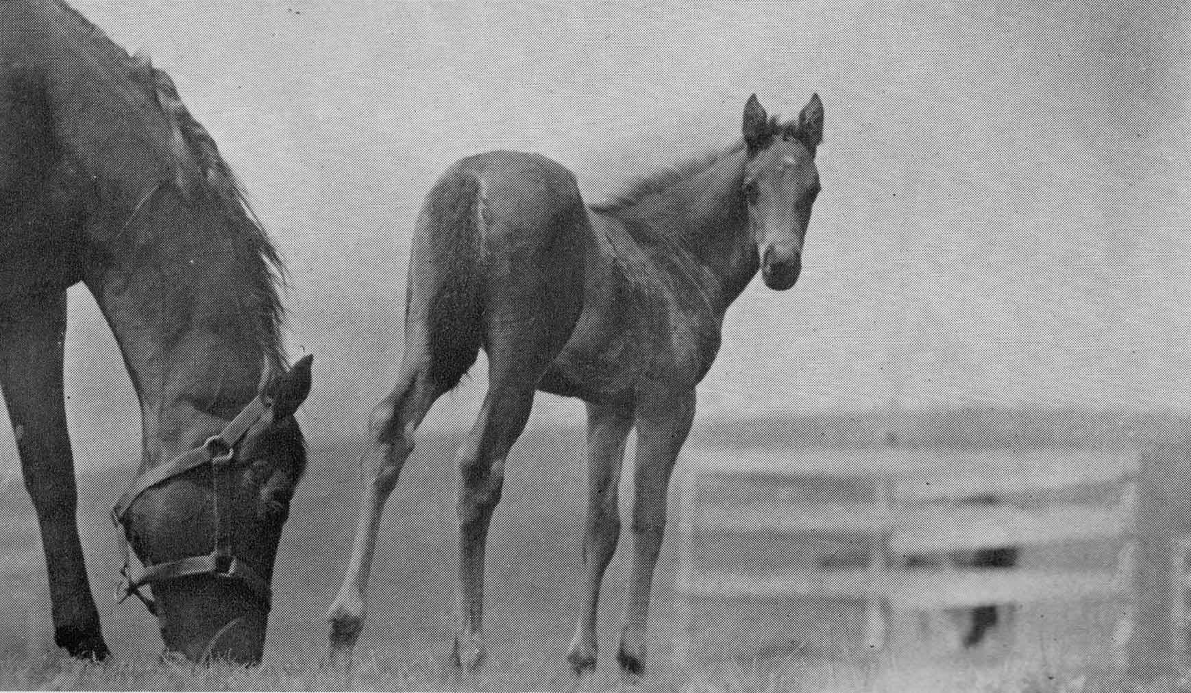 A young Thoroughbred and his dam; is he born to play polo or will he require years of thoughtful effort and interminable patience in training?