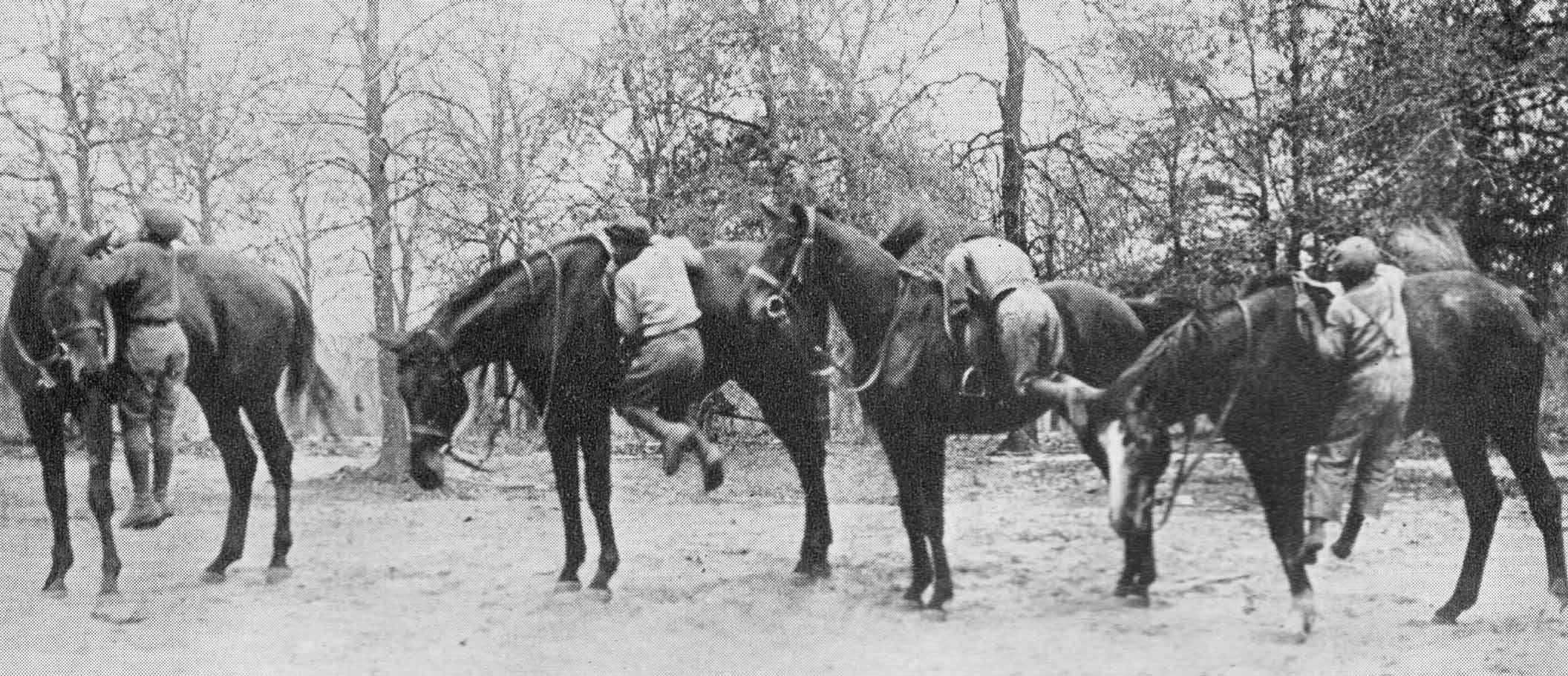 One of the first is the herding instinct as mentioned before. Another is the instinct to flee from whatever frightens or annoys him. Gradually, and by well-chosen logical steps, the horse must be trained and educated until he loses fear and gains confidence in his rider; and until finally the rider’s will becomes the will of the horse; or at least until the horse is apparently unable through habit, to resist the demands of his rider. This frequently is a long and tedious process requiring infinite patience on the part of the trainer.