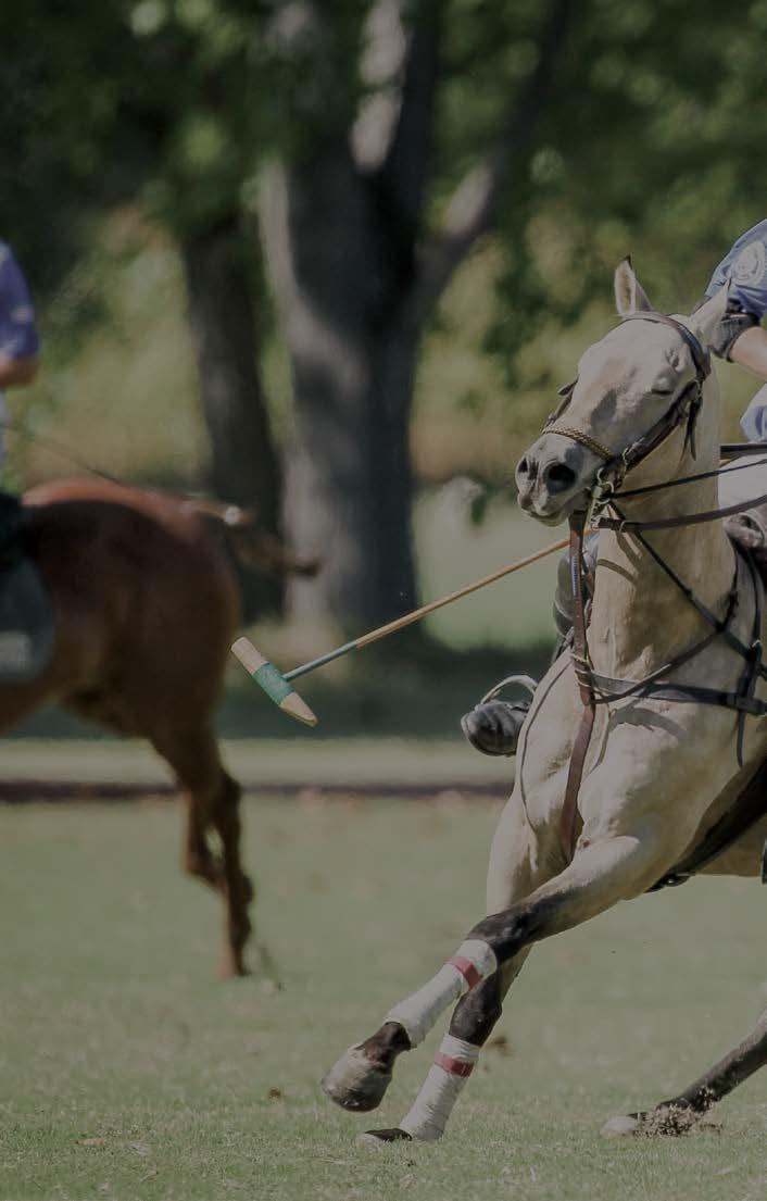 High/Medium Goal Tournament Highlights 2012 Polo on the Prairie 8-goal Champion. 2012 U-18 Tianjin Metropolitan Polo World Champion. 2014 Flying H 14-goal Finalist. 2015 Mashomack Polo Club USPA Player’s Cup 8-goal Runner-Up. 2015 Mashomack Polo Club Eduardo Moore 8-goal Runner-Up. 2015 Houston Polo Club Autumn Classic 4-goal Champion. 2015 Houston Polo Club Penny Cup 4-goal Champion. 2009 Open Interscholastic National Champion. (432) 634-1402 / russell.stimmel@yahoo.com