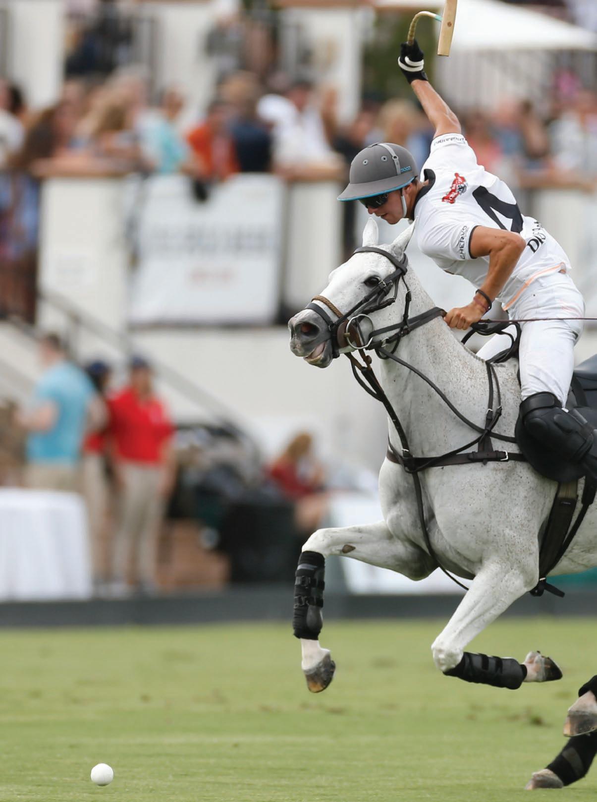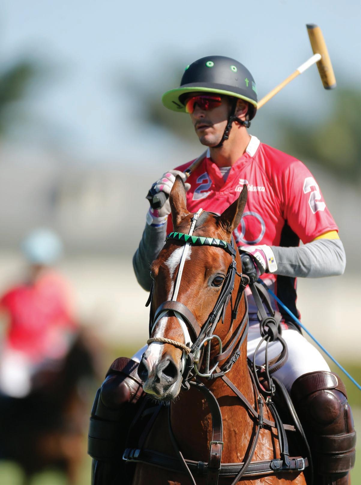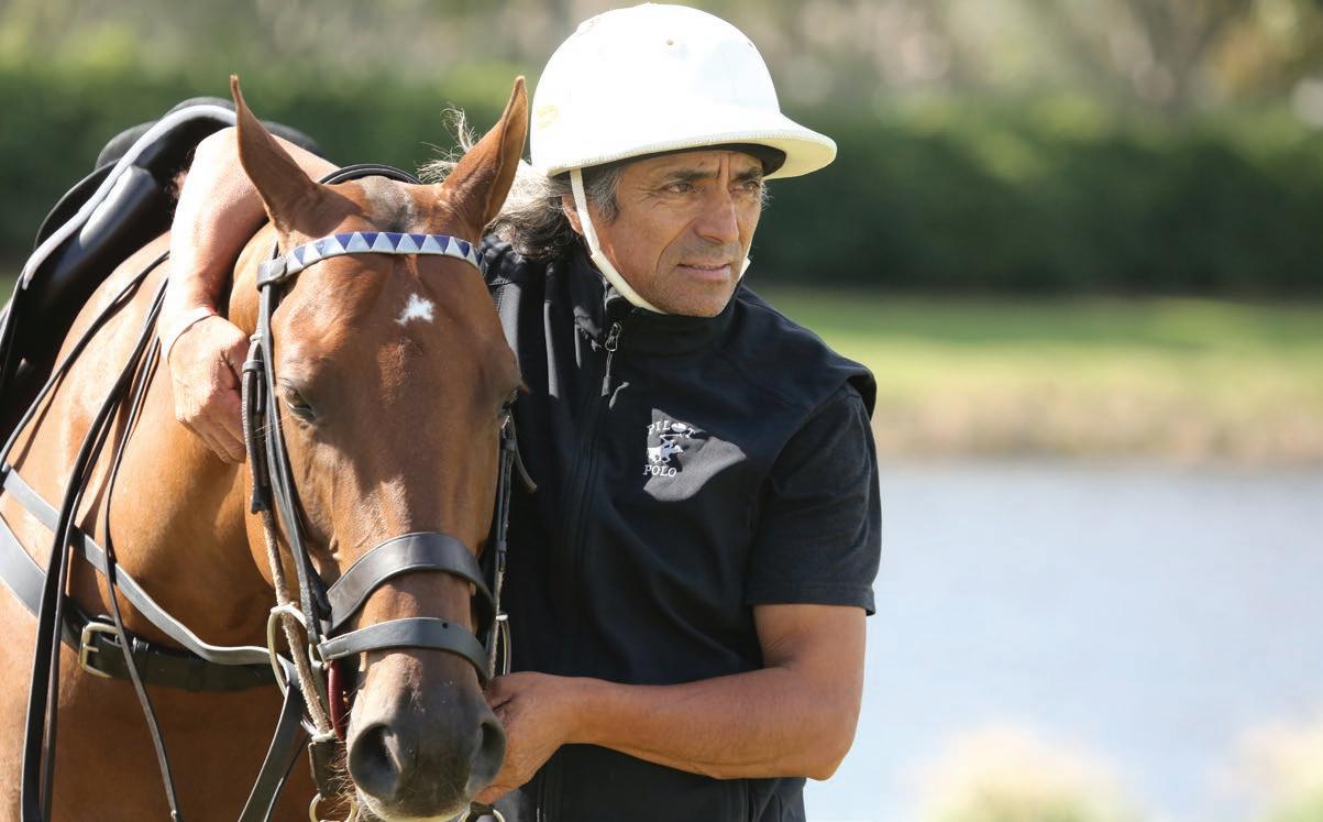 La Herradura’s Santi Torres walking onto the field at Empire Polo Club (Indio, California) during Champions Cup competition.