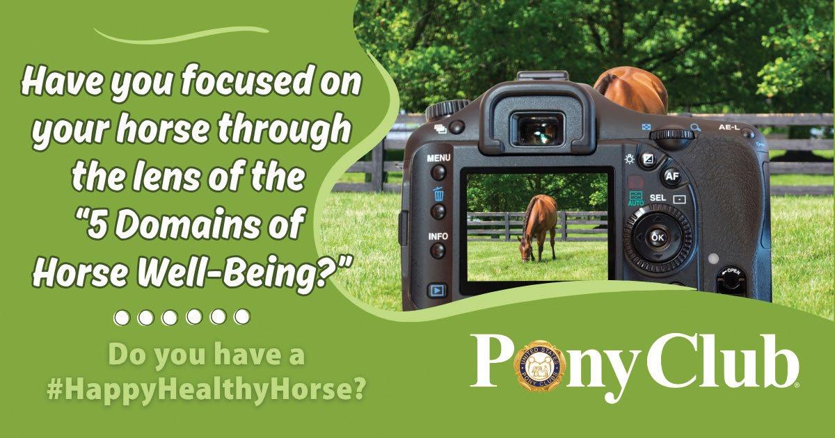 Since its founding in 1954, the United States Pony Clubs, Inc. has steadfastly championed the care and well-being of horses, placing horsemanship—defined as the knowledgeable and compassionate care of the horse—at the center of the organization’s mission and educational objectives. The love of the horse, and what is taught through Pony Club, fosters a deep sense of responsibility toward the comprehensive well-being of horses and ponies. Now, USPC is highlighting its commitment to equine well-being with the launch of its new #HappyHealthyHorse Well-Being Initiative that challenges all within the horse industry to really focus on their horse through the lens of the five domains of horse well-being described below.