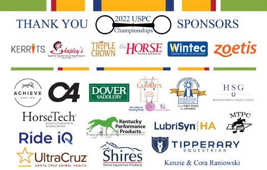 DISCOVER USPC, The Official Magazine of the United States Pony Clubs, Inc. is published three times a year by the United States Pony Clubs, Inc. and mailed to Pony Club families and Corporate Members. Readers are encouraged to submit ideas or articles for publication. Address all correspondence to the Editor at the above address. USPC reserves the right to refuse any advertising or copy that it feels is not in the best interest of the membership of this association. USPC is not responsible for the opinions and statements in signed articles and paid advertisements. These opinions are not necessarily the opinions of USPC and its staff. Pony Club recognizes that equestrian headgear that does not meet USPC Policy # 0810 is not safe, although certain equestrian activities pictured in this magazine may not adhere to these requirements. Change of address must be made six weeks before date of publication for next issue to be delivered to a new address. Address changes can be made to your USPC member profile online or by mail. POSTMASTER: Send address changes to United States Pony Clubs, 4041 Iron Works Parkway, Lexington, KY 40511-8483.