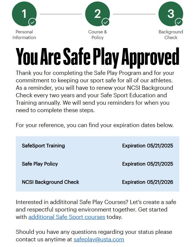 Step 1: Visit www.usta.com/safeplay and click on “Get Safe PlayApproved”