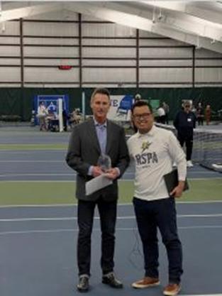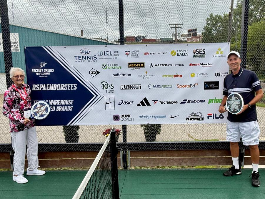 Also, we would like to congratulate Dallas Aleman, Cuyahoga Falls, OH, for his induction into the RSPA Midwest Hall of Fame. Along with that, we would like to congratulate Towpath Tennis Center, where Dallas is the owner, for becoming a platinum member for the RSPA Midwest They have everyone on their pro staff certified by the RSPA